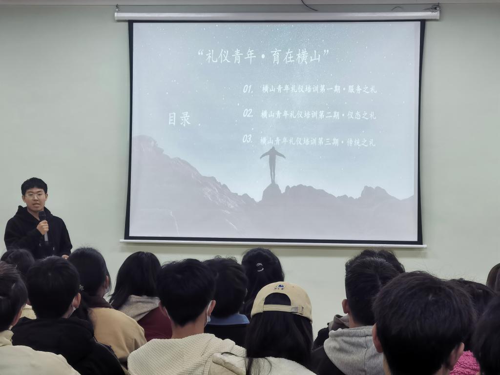 在活动的末尾,横山书院学生自治委员会资源拓展部的部长贾轩同学给大家带来本学期“礼仪青年·育在横山”礼仪主题活动阶段性的总结汇报,总结指出横山书院基于“通书达礼”的家风家训与“品质、突破、魅力”的培养基点,希望大家都能够学会知礼、懂礼,在此基础上追求更加有品质的生活模式,在成长路上不断突破自我,塑造自身形成良好思维模式,最终能够拥有自身的独特魅力,保持个性但不失本性,该活动旨在通过让同学们了解生活、工作等各个场合的礼仪要点,日常生活中我们该如何展现正确的礼仪行为,让同学们心中有礼仪的种子,可以在合适的场合运用到,我们希望每一位同学都尽可能参与每一次礼仪活动,一点点积累,走向自己的礼仪成长之路。