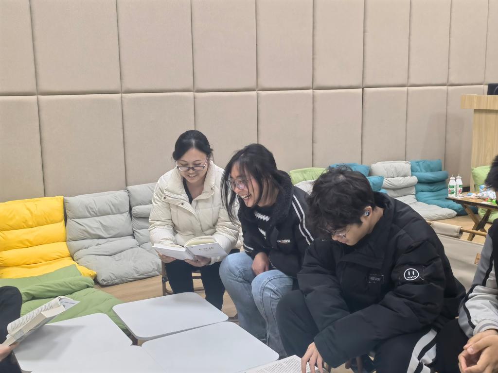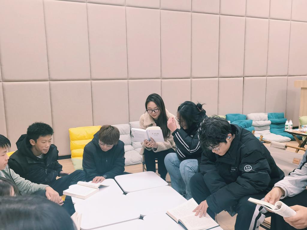 立志宜思真品格,读书须尽苦功夫。接着,娱乐结束以后,开始开展12月大咖阅读活动。学生代表们在三位导师的带领下,开始分享书籍中好词好句,将哲理运用于生活,柳凯文同学将本学期拿到的书籍中-乔布斯传中乔布斯所为世界改变的、带来的潮流,不是一种时尚、不只是一种习惯、不只是一种方式,更多的是一种思维,一种简单利落却又包含高贵的思维给表达出来。老师同学们坐在一起,共同探讨书中人物与事件,从书中找到成长的经验和答案,也是对人生路上的一种理解方式。