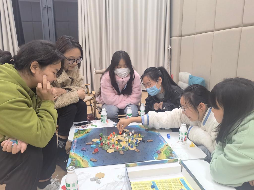 为了增添在校学生的生活趣味,异科导师李海燕、王中银、李旎老师组织班上学生代表举办了桌游活动,本次桌游活动培养了群体协作能力,促进了合作与竞争,同时缓解了学生学习的压力,放松身心,有助于更好的学习的痛死,拉近了学生与异科导师之间的距离,师生之间关系也更加亲切。本次桌游活动场面既温馨又和谐,每个活动师生都积极参与其中,桌游活动采用了“大富翁”游戏,这个游戏就像是一次创业,刚开始什么都没有,必须凭借自己的智慧去获取财富,在关键节点,必须果断做出决策,善用杠杆。之后也玩了“逃离亚特兰蒂斯”桌游,增进学生们的互帮互助,感情交流。还玩了“宝石商人”桌游,让学生体会到了累积财富、资金规划的快乐。在游戏过程中,异科导师们积极为学生们答疑解惑,询问学生平时学习或生活上的困难,积极关心学生心理状况。