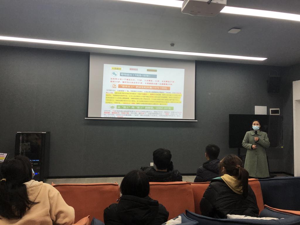 分享会伊始,潘家玲老师分享了周桦著的《褚时健传》。首先,潘老师从早年经历、“烟草大王”的诞生和陨落、从“烟王”向“橙王”的转变对褚时健的人生经历进行了详细介绍;其次分享了褚时健的人生语录;最后潘老师总结了自己读此书的感悟:人活着是要有点精神的,只要活着,希望就一直在;只要活着,就要把每一天安排好,这就是对人生负责。号召学生们学习褚时健的精神,如专注、坚韧不拔、不怕苦、不怕累等,做到持之以恒、即使遭遇“V”字人生,亦能触底反弹。