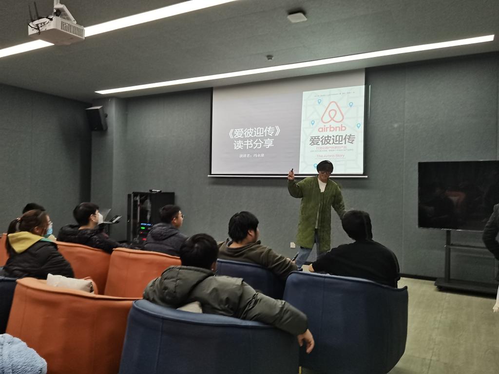 2021级软件工程7班冯永康同学为大家分享了《爱彼迎传》,他首先介绍了作者利·加拉格尔,然后详细阐述了爱彼迎实践7大产品原则:创造性、锁定产品价值、降低成本、快速优化、完善监管、触达新用户、持续提升。冯永康同学认为时刻思考用户需求是爱彼迎制胜的法宝。最后总结了读此书的四点感悟:一是拉面经济;二是没有先发优势来必会输;三是细节决定成败,细微之处见真情;四是创业不是罪个人能力就能做成大事的,除了团队还要有导师。