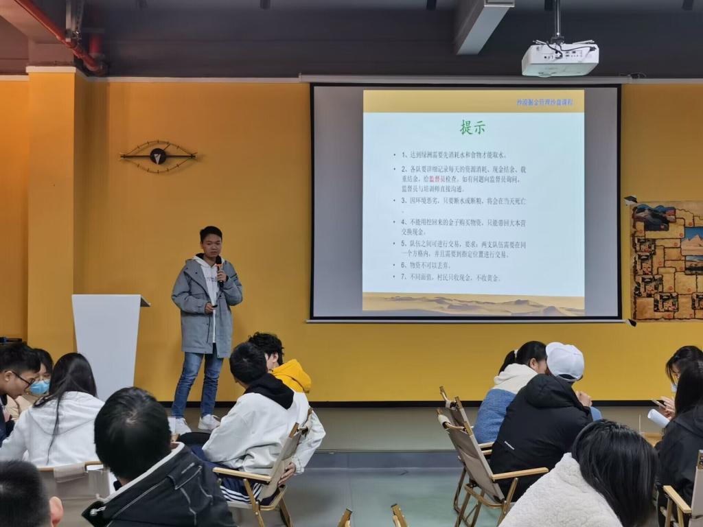 为全面提升同学们的规划能力和决策能力,培养团队协作精神、资源配置能力、危机处理能力,确保同学们能够快速适应充满竞争的、错综复杂的社会环境,成功从“校园人”转型成合格的“社会人”,我校瀛溪书院于12月4日举办了“极限寻宝——沙漠掘金仿真训练营”第二期活动。活动采取沙盘游戏的形式,从多方面、多角度模拟企业小组成员的分工与合作,紧扣“管理、决策”四字展开,兼具趣味性和不可预测的挑战性。