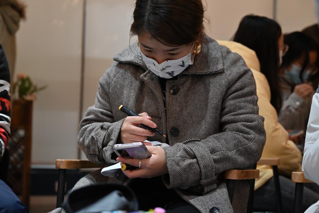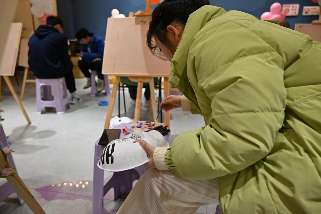 整个现场氛围十分宁静和谐,大家都在认真勾勒手中的图案,画出自己丰富多彩的内心世界。在画面具的过程中,可以让自己身心放松下来,从设计图案,到色彩搭配,再到渲染勾勒,最后形成一张张属于自己的独一无二的“面具”,整个过程很治愈,也很愉悦,舒缓了大家工作和学习的紧张感。此外,同学们可以通过绘画更加充分了解和认识自己的内心,也增进了同学之间的情感交流与互帮互助。