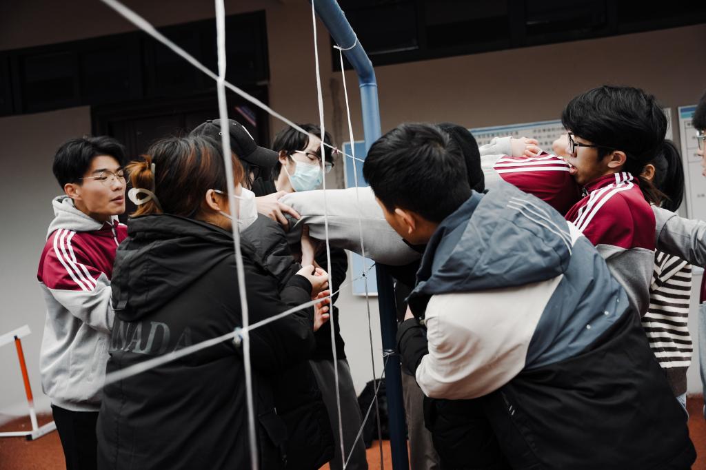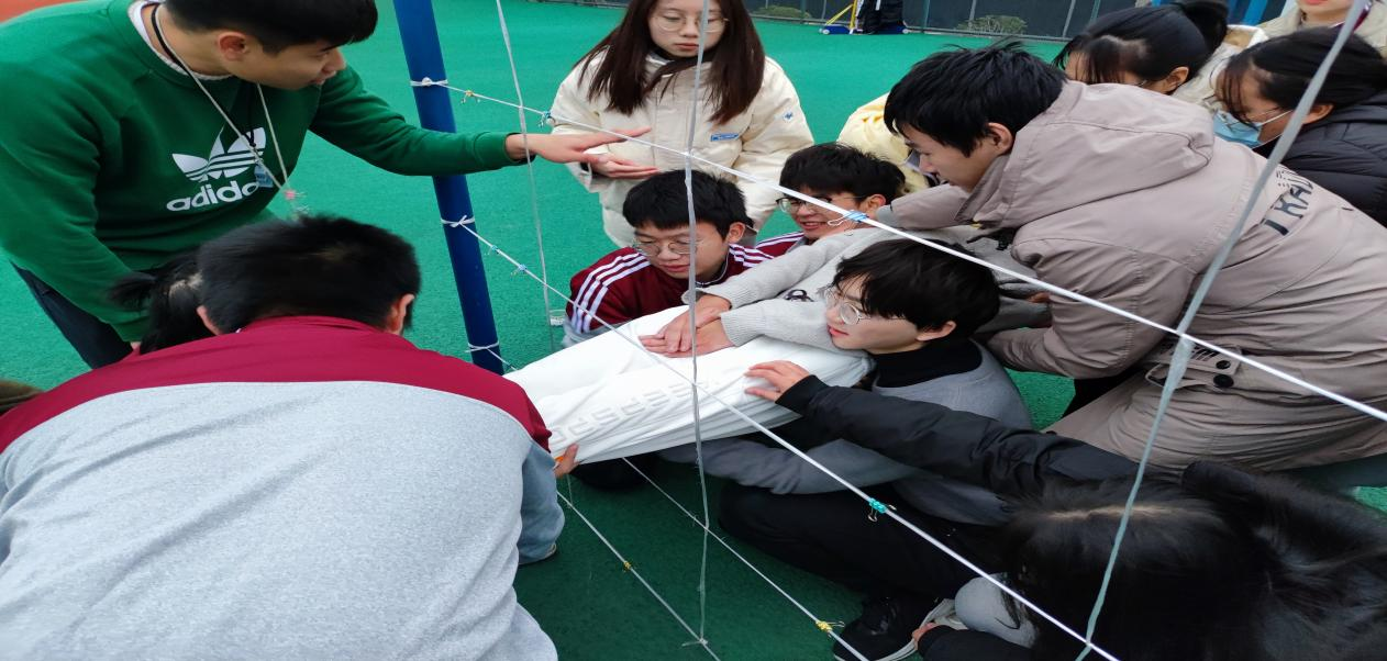 同学们被教练员随机分组,在规定时间内,所有人员需要一直待在固定位置,按照要求完成相应任务,各组每完成一项任务需举手向教练示意,教练检查确认后将为正确的小组加相应的积分。各组队友相互协作,遇到困难积极沟通,用理智与冷静攻破了一道又一道难关。本次项目培养了同学们团队沟通的意识,体验到及时与队友进行有效的沟通,会让我们少走弯路,达到事半功倍的效果!