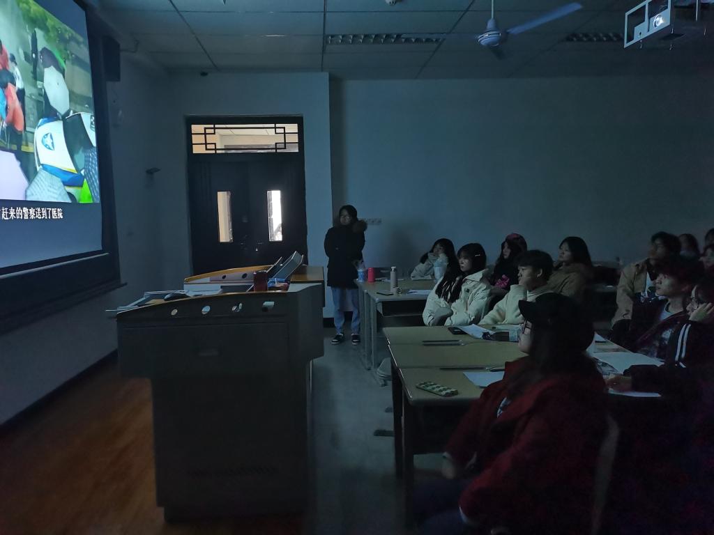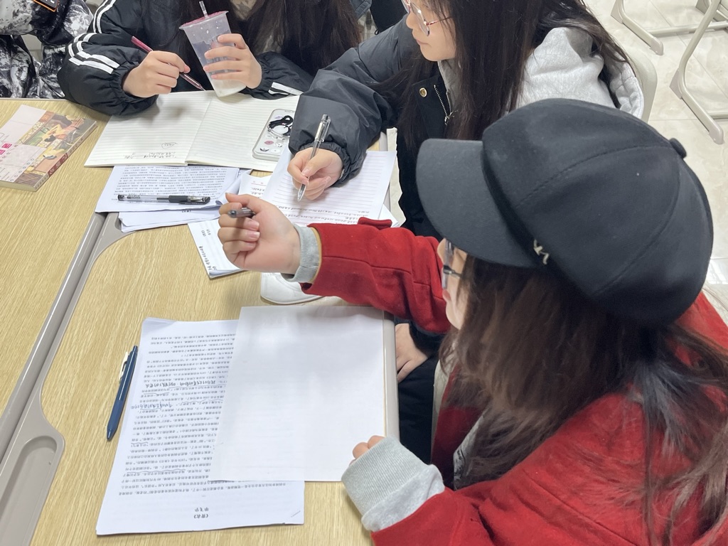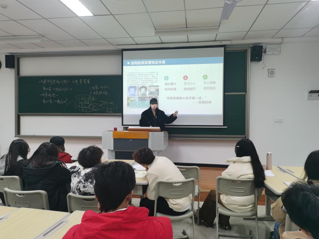 罗斐同学陈述完梗概之后是同学们的讨论和提出问题,先是一组的陈馨怡同学提出疑问:“对于女主人公18岁就能领证结婚和精神失常的原因怎么解释?”其他三组按照顺序也进行了提问,比如:故事情节的设置与主题的关系是什么?这个主题是否有价值等等,面对这些尖锐的问题,罗斐同学显得有些手无足措。