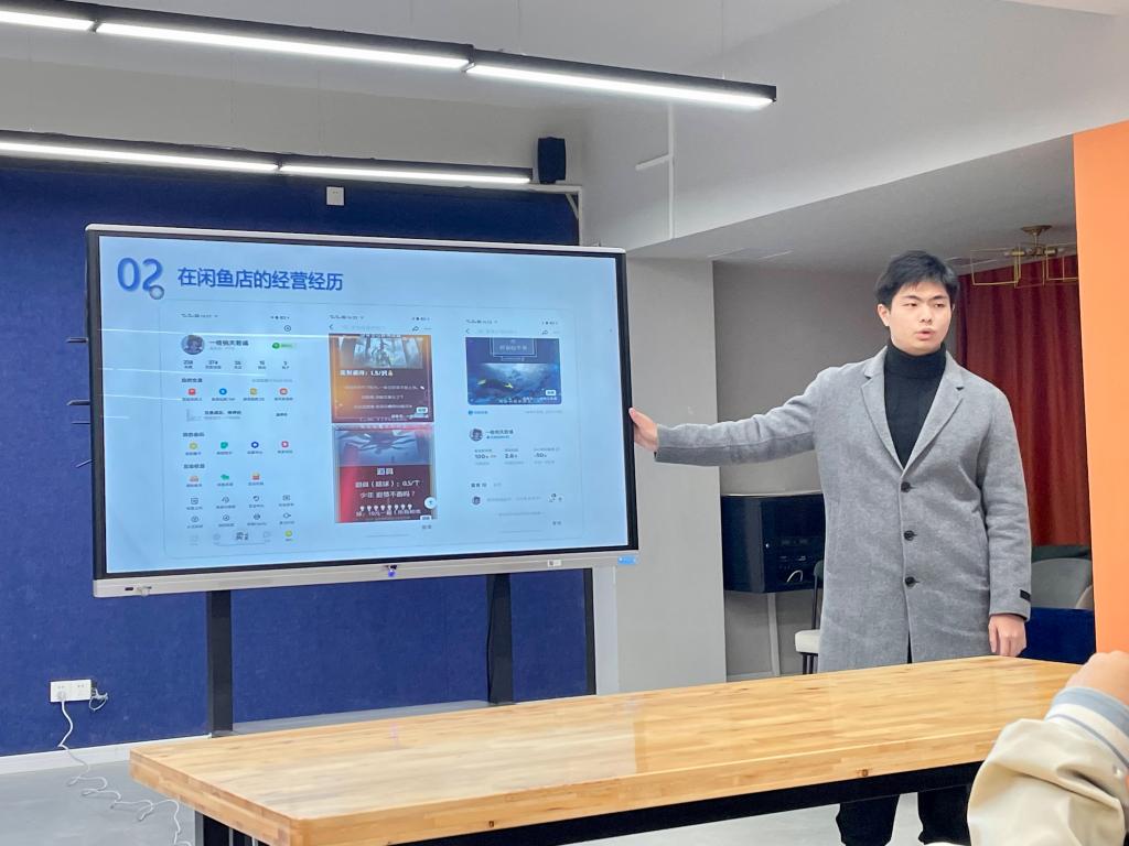 “从“0—1”的突破,参与小二郎线上企业走访直播就像是打通了我的任督二脉,与企业任聪总监线上云对话,是我最为骄傲的事情,我也十分乐意将我所学分享给大家。”蒋晓龙同学围绕参与线上企业讲座的感受、结合自己的创业经历、会后与任聪总监交流为内容向大家展示了现阶段市场营销项目小组“瓶颈”解决之法,提供了企业学习的思路和大学生创业的相关建议。