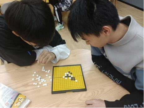 在主持人介绍了五子棋的历史发展背景,相关理论知识、比赛规则以及积分方式后,同学们便展开紧张地对弈。在纵横交错的棋盘上落子,如同星罗棋布。同学们时而眉头紧锁,时而眉舒目展,五子棋的局势变化极为激烈,选手们必须招招谨慎,每一步都是智慧的博弈,每一招都是思维的碰撞。小小的棋子在广袤无垠的棋盘上演绎着无数种可能。