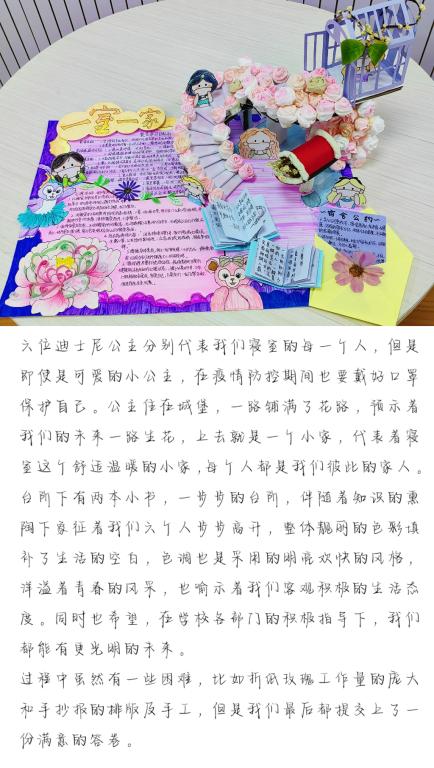 “宿舍心理之家”手抄报活动意在发挥集体作用,让个体在互动中感受其他成员的智慧、能力以及劳动成果的影响,不断提升能力、开拓思维,展示才华、开拓未来。活动成果以心理成长小报的形式呈现,宿舍成员要协商制定“三有一约”,“三有”既有共同的学习目标或学习活动,有开展心理健康、科学防疫等特色活动,有思想交流、解决矛盾的方法;“一约”即是宿舍公约。让宿舍成员在活动中更熟悉了解彼此,在活动中培养更浓烈的友谊。