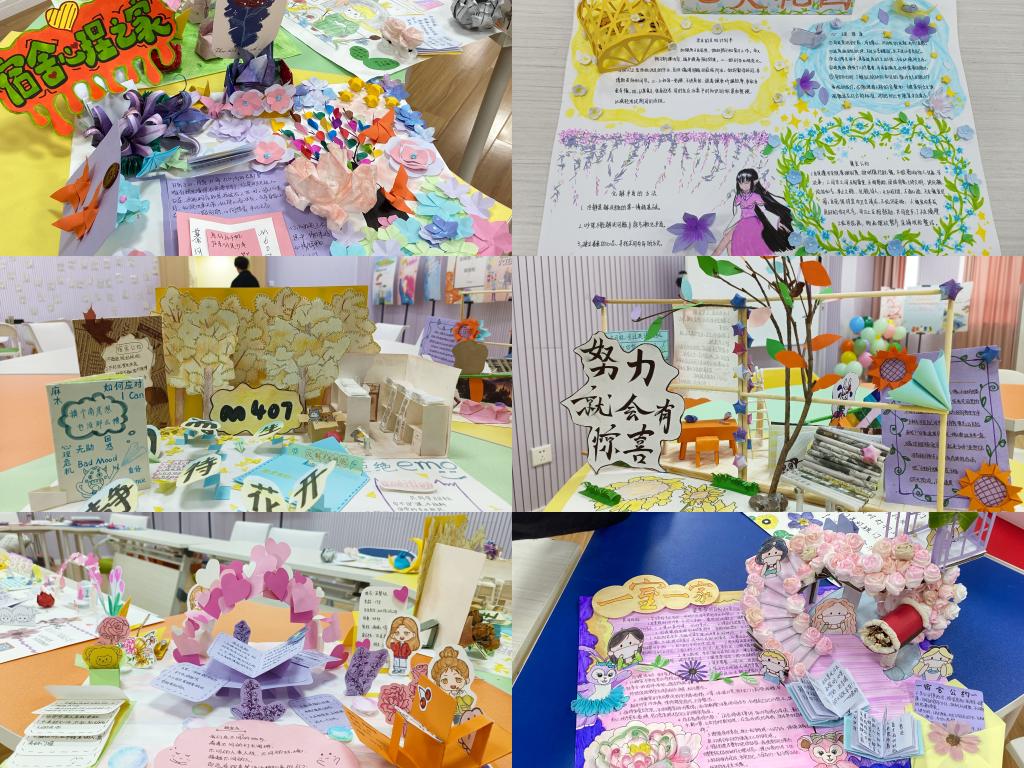 活动期间参赛团队到达现场,领取材料前需要先完成三个小互动,“烦恼粉碎机”是让参赛队伍用纸条记录下的宿舍烦恼和宿舍不良习惯投递到粉碎机,呼吁成员释放烦恼,改掉不良习惯;“彩虹心愿簿”通过写下想要完成的目标随机匹配搭档完成,在相互的监督下完成目标,在互动中拓展人际关系;“惊喜盲盒墙”是以抽选盲盒并完成相应挑战的互动,在面对挑战中提升勇气,做出改变,从而引导参赛者对自己的目标踏出第一步。如约完成挑战,成功领取物资,开始制作之旅。心理成长小报制作过程中,宿舍成员分工协作想以最佳的创意与最美的呈现展现宿舍生活的点滴,有的成员擅长手工,将宿舍的缩影通过手工材料复刻在手抄报之上;有的成员擅长绘画,将生活的千姿百态进行描绘;有的成员思维活跃,贡献出丰富的创意等。一幅作品让整个寝室沉浸其中,也许是一起畅想未来,也许是一起过好现在,调节寝室内部关系,在制定“三有一约”的过程中也拉近了彼此的距离,共同期盼未来的大学生活。最后,各宿舍也满怀欣喜交上了他们的“满意答卷”。