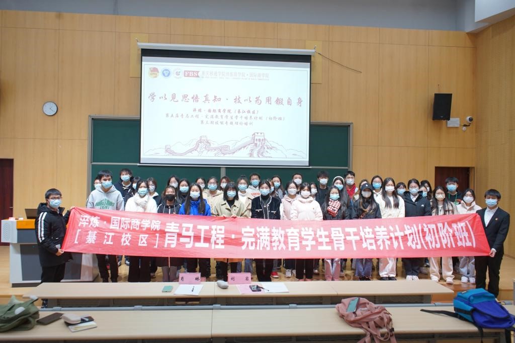 学如弓弩,才如箭簇。新时代的青年正处于人生积累阶段,需要像海绵吸水一样汲取知识技能,练就过硬本领,在攀登知识的高峰中追求实践,在实践中不断增长才干,在真刀真枪的实干中成就一番事业。为助力商院培养拥有过硬技能本领的学生骨干,淬炼·国际商学院(綦江校区)于2022年12月1日12:30在玉棠书院阶梯教室举办了以“学以见思悟真知·技以为用锻自身”为主题的第五届青马工程·完满教育学生骨干培养计划(初阶班)第三期专题理论培训课程。