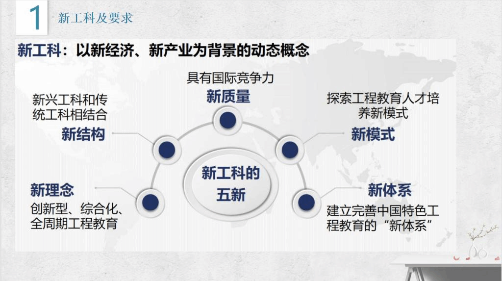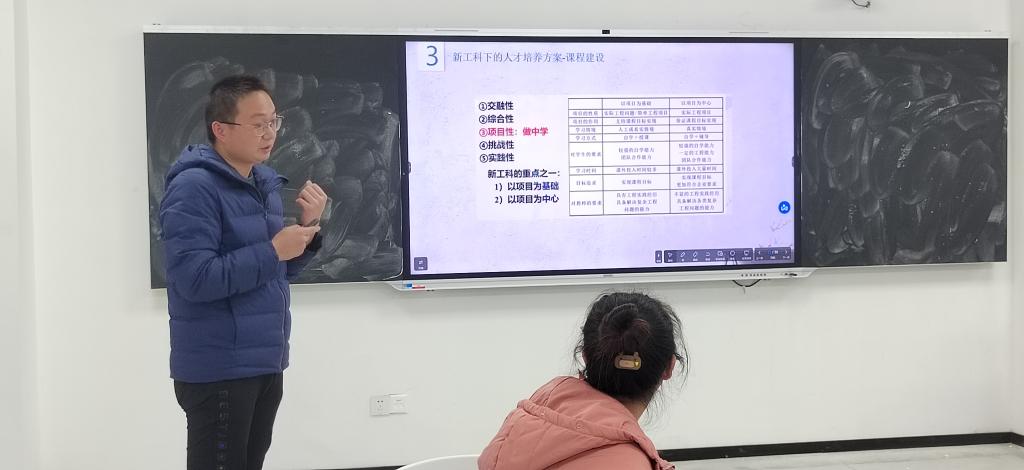 分享会伊始,杨老师提出了新工科的“五新”概念:新理念、新结构、新质量、新模式以及新体系,加深了老师们对新工科教育的理解。杨老师谈到新工科建设目标之新,体现于“知识之新”和“人才之新”。新工科教育的定位,是致力于培养和提供大量的科创人才,通过学科交叉融合和跨界整合,了解新技术和新产业发展趋势,促进学科交叉与跨界整合,推动工科专业之间、工科与其他学科专业交叉融合,培育建设新工科专业。