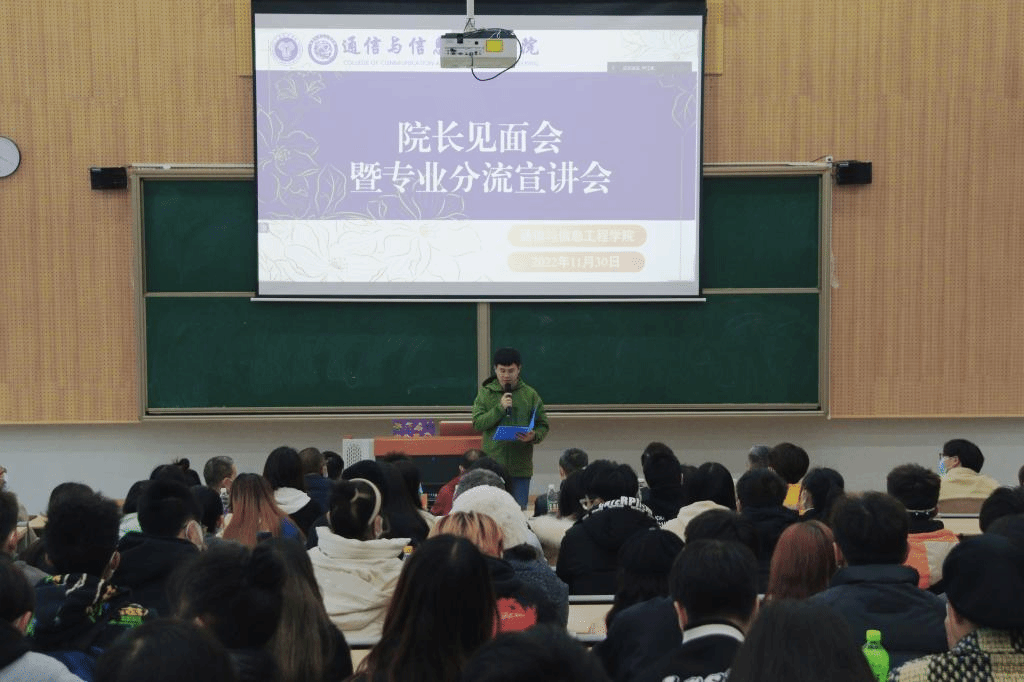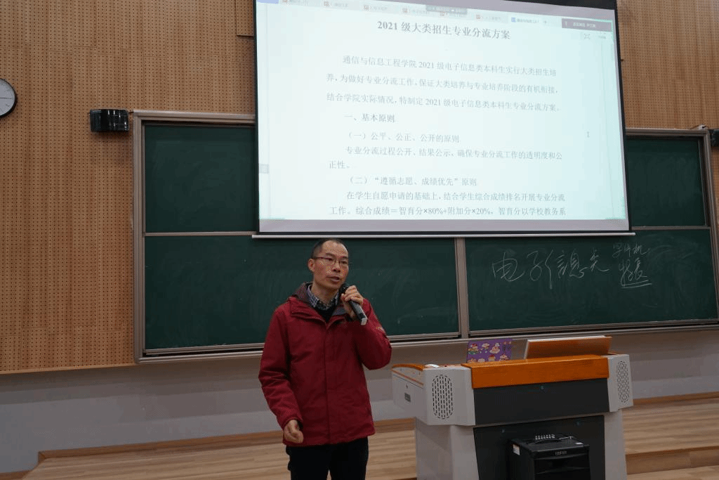 为贯彻落实学院专业分流工作,增进同学们对专业的了解,使同学有更好更长远的规划选择,11月30日下午,我院借助腾讯会议平台以及横山书院阶梯教室,开展了通信与信息工程学院专业分流宣讲会。通信与信息工程学院副院长王国树副教授,学院各教师、2021级辅导员、2021级全体学生共同参加此次会议,会议由2021级辅导员周俊老师主持。
