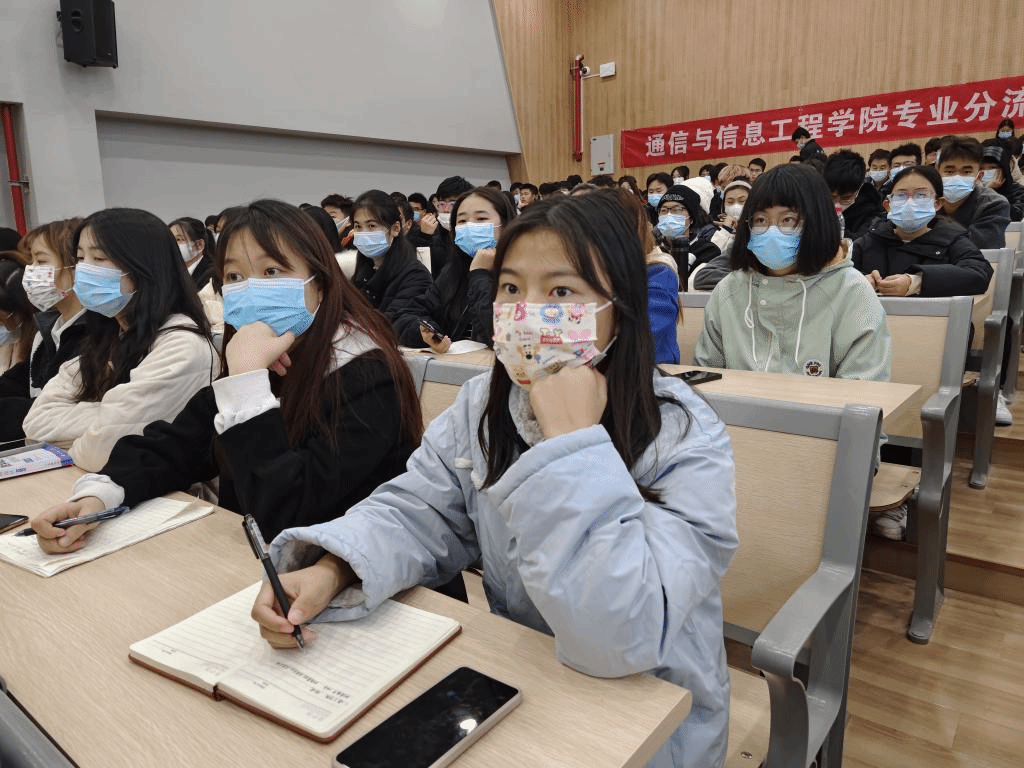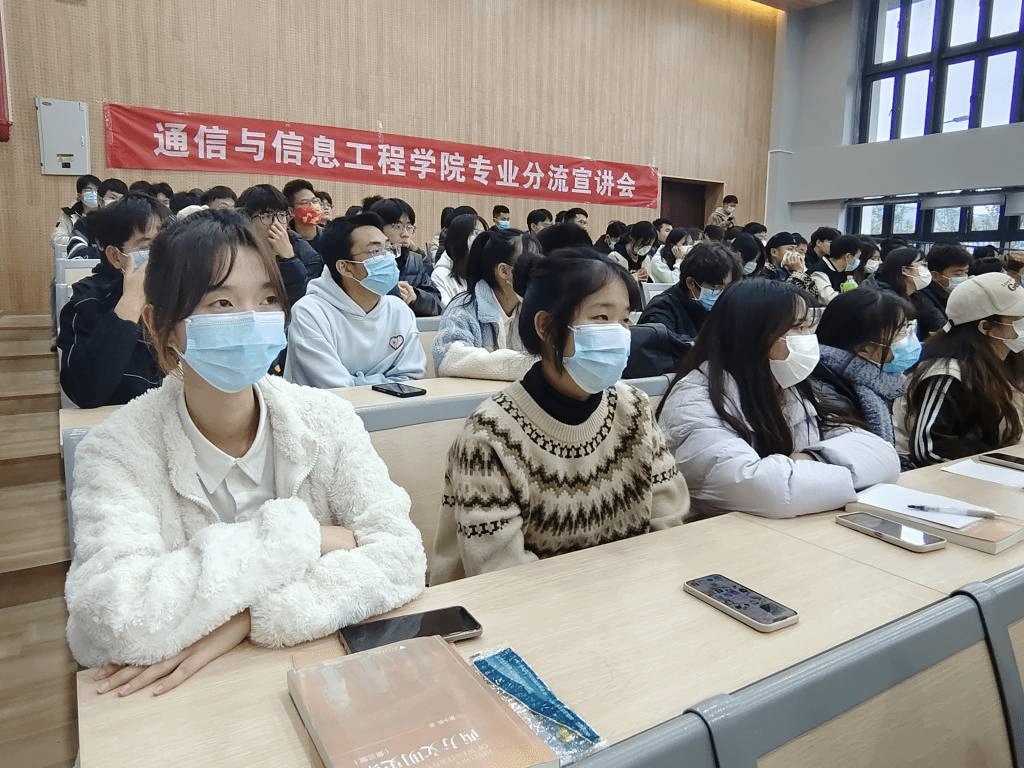 伴随着一阵热烈的掌声,本年度通信与信息工程学院专业分流宣讲会落下帷幕。宣讲会的有序进行,使2021级电子信息类的学生不仅了解了相关专业的信息,还感受到了学院为学生谋发展的诚挚之心。参会同学表示,通过老师们的宣讲,进一步理清了思路,对专业分流有了更清醒的认识,自己有了更明确的选择目标。即使不选择分流,听了老师的讲座,开阔了眼界,了解现代通信工程发展的最新动态,为自己今后的学习指明了方向,增添了信心。