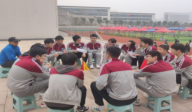 为了让来自各班的同学相互认识,减少彼此陌生感,教练采取“叠罗汉”的破冰方式,让同学们围成一个圈,依次介绍自己的姓名,下一位同学需在介绍自己的名字前叠加前一位的名字,以此类推直至一圈结束。通过“叠罗汉”的方式让各位同学快速熟悉起来,铭记彼此名字,懂得彼此是一个团队,牢记在接下来的项目挑战不能有一个队友落下。