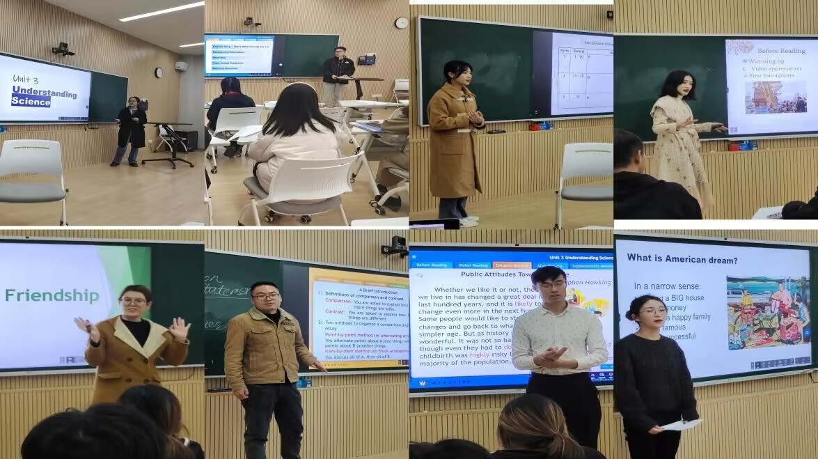 十二月一日下午,对于公共基础教学部外语教学组是一个特别的日子。虽然气温骤降寒风凛冽,但也阻挡不了英语组教师技能大赛的举行。本次比赛由四个资深教师和八个学生代表组成评委团,九位新晋青年教师参与比赛。这次比赛不仅是为了展现新老师们的教学风采,更为以后合川校区的比赛做好准备。
