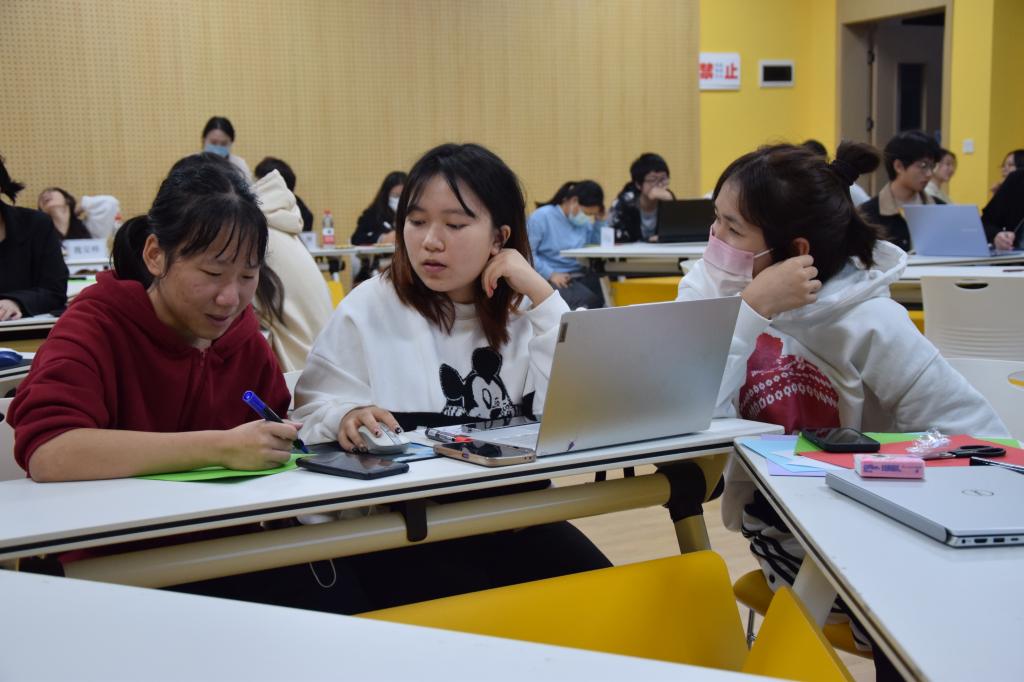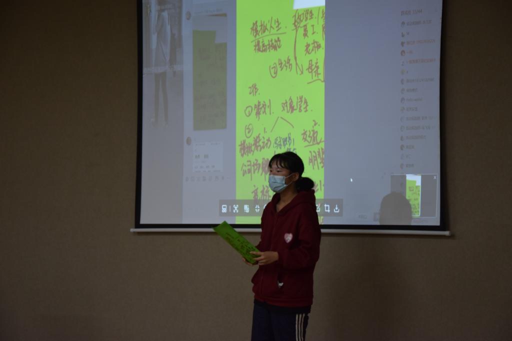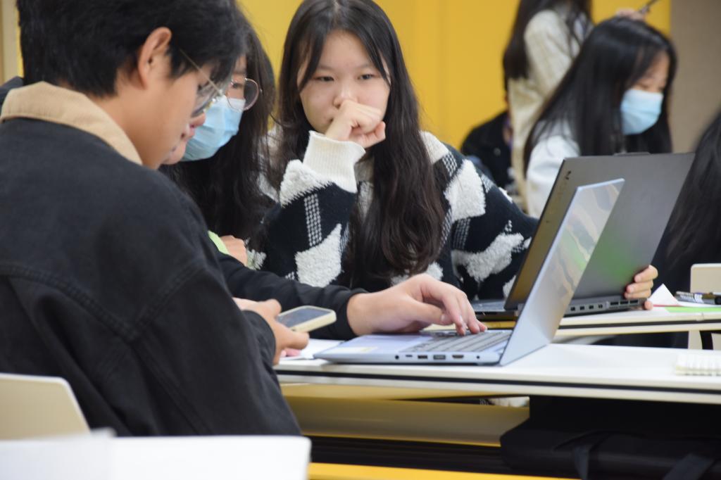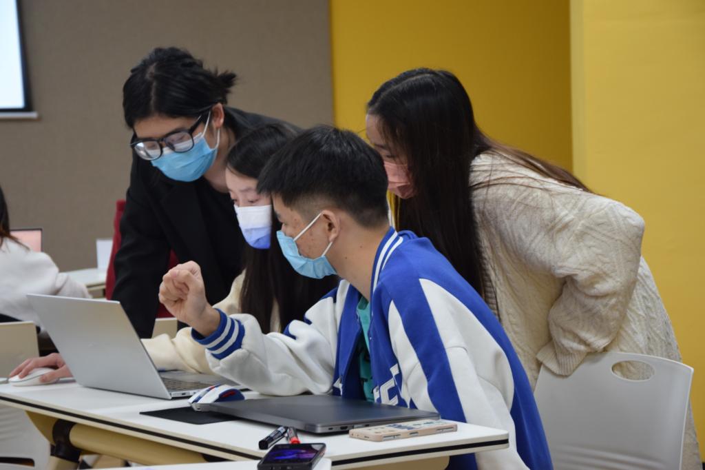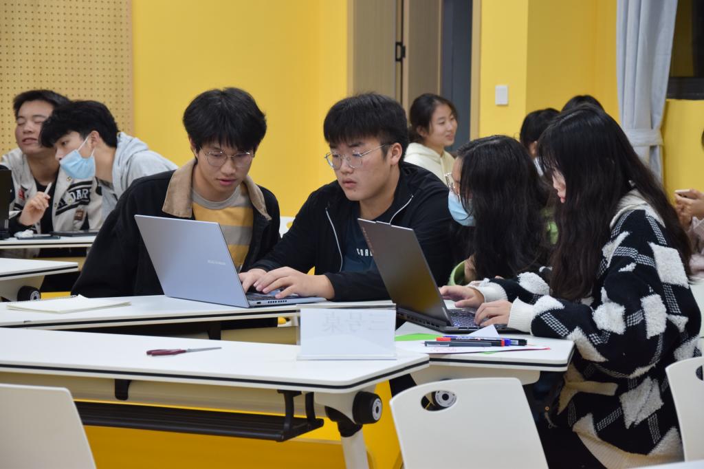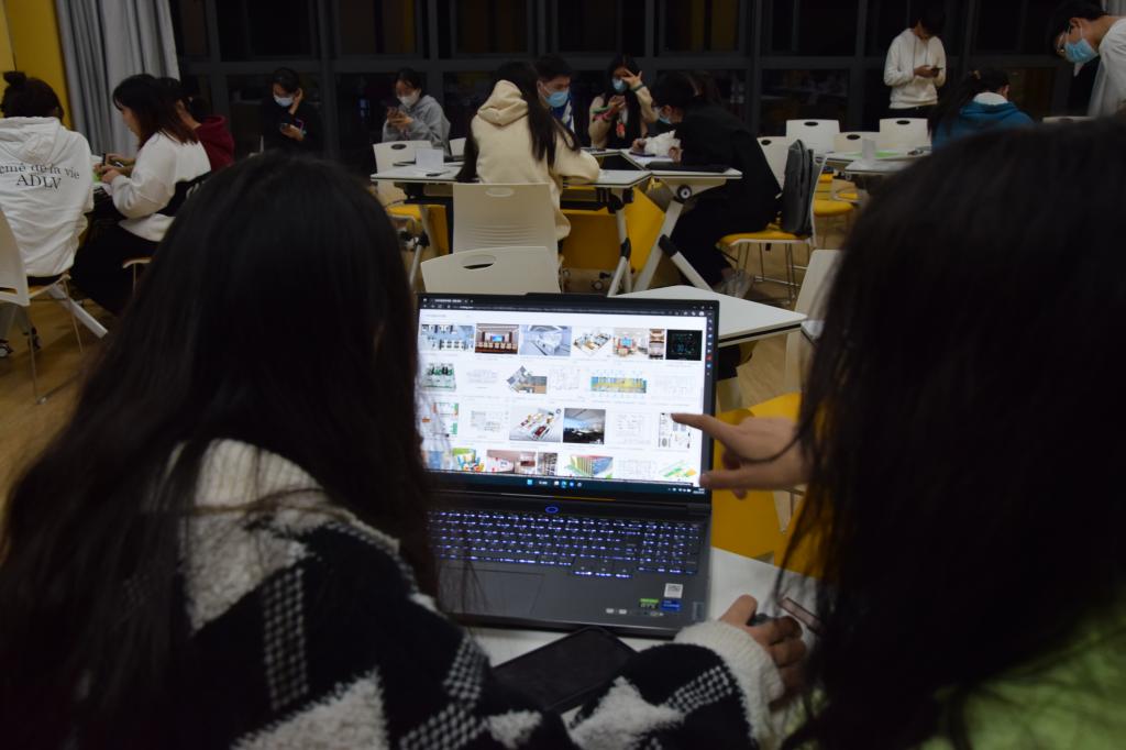 此刻压力长成了一朵尽情绽放的花。面试以第三环节的内容压迫来到高潮部分,面试小组各自选择设计瀛溪书院布局图,拍摄瀛溪书院功能室宣传片,策化活动具体实施流程。看似不可能完成的任务渗透着无穷压力。时间毫不留情地移动着,手指在键盘上疾驰,每慢一步都有落后的可能。“你来寻找模板我来制作海报”“这个环节的设置我觉得不太合理”有交流、有碰撞、更有分歧。虽然任务没有完成,但是各小组抓住了作品亮点进行阐述,为这个不可能完成的任务交出了9分答卷。