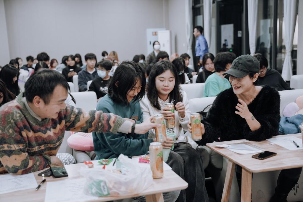 由于同学们来自全校不同专业,彼此不熟悉。经验丰富的王老师就在第二节课时,将同学们分成八个组,并早早下达了期末考题——创作一个不低于6分钟的视频作品或者现场表演作品,让各小组早早进入预警状态。王老师强调,这个期末结课作品,每个组都会有奖,他会请很多评委来打分,还会买来很多吃的,跟大家共同分享一个愉快的夜晚。