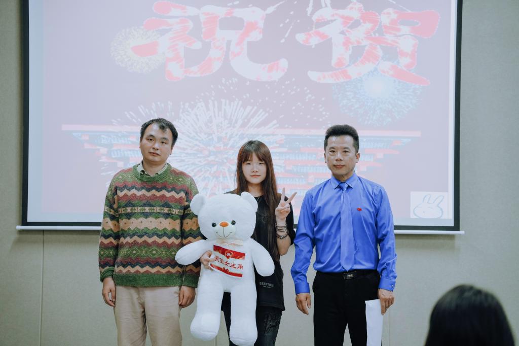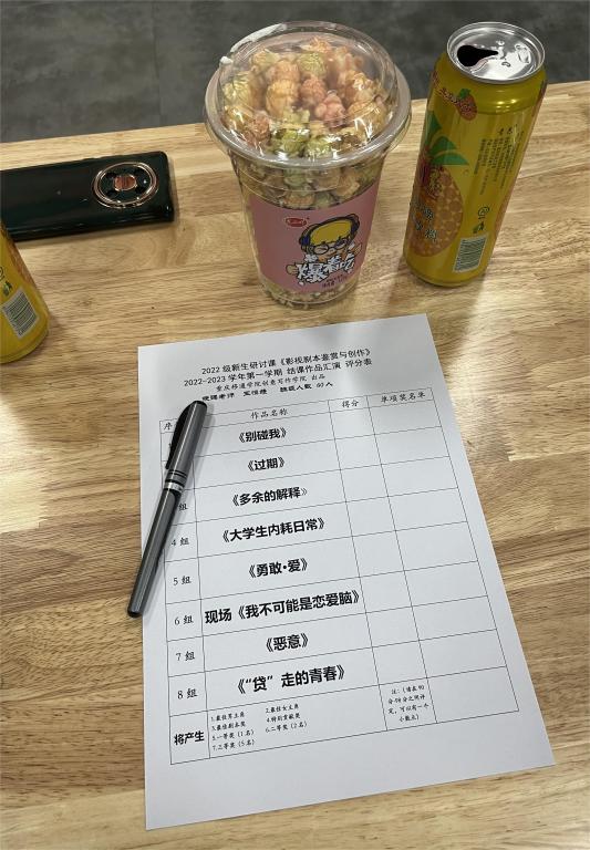 最后,由创意写作学院副院长苏瓷瓷老师、李慧文老师、段瑶老师、李言老师和包丽芳、张燕明、林心蕊三名优秀学姐组成的评委阵容,经过紧张的讨论后,第2组作品《过期》获得一等奖,第7组《恶意》和第5组《勇敢 爱》获得二等奖。其余五个组获得三等奖。当晚还评出了最佳剧本奖,由第六组《我不是一个恋爱脑》获得。还有一个特别贡献奖,给了课堂表现优异的王宏波同学。最激动人心的最佳男主角和最佳女主角,分别由白鑫城同学和冉雪瞳同学获得。白鑫城立马将这个好消息现场直播给爸妈,家人都替他高兴。
