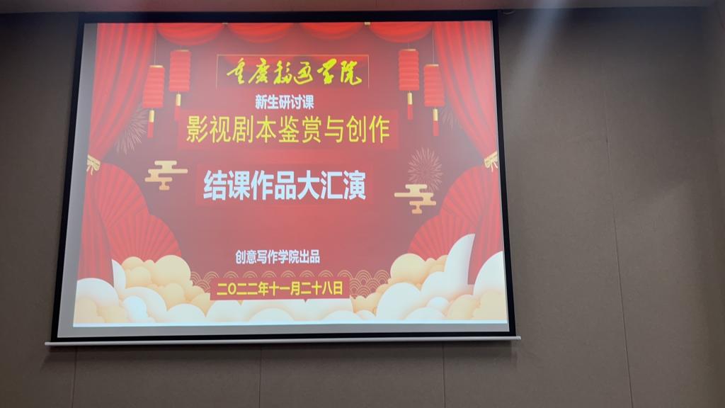 《影视剧本鉴赏与创作》是创意写作学院出品的新生研讨课,主讲老师王恒绩曾有过十多年的影视编剧经验,不少作品投拍上映并产生不错的反响。这门课当年在合川校区参加新研讨课比拼的时候,获得全校第一名。去年,该课也在綦江校区获得开门红。本学期,该门课60名同学,每周一的晚上相聚在勤者楼503,在王老师的带领下,师生们共赏剧本,共创剧作,共开脑洞,产生了大量奇思妙想,很多故事就体现在结课作品汇演中。