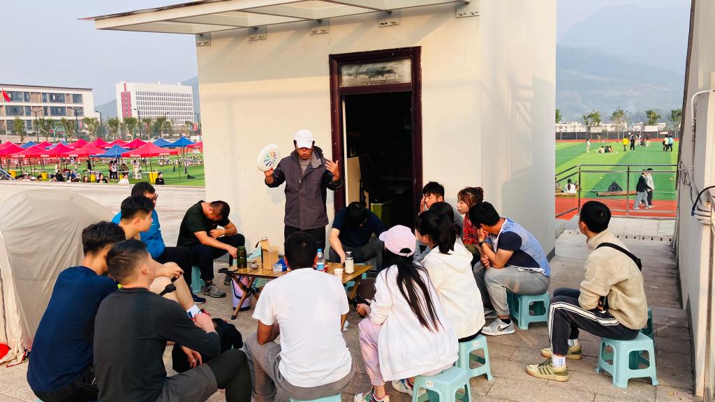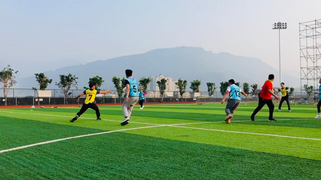 最后两部门间进行了飞盘大赛,比赛共三节,每15分钟一个小节。为保证比赛顺利进行和良好的活动体验,赛前,营地教育中心的宋洋老师专门对飞盘运动的规则、防守、注意事项等进行了详细地介绍与讲解,手把手的对我们进行了接盘和传盘的教学,带领我们进行分组的传接盘练习。比赛开始前进行相关的热身准备,避免运动受伤。