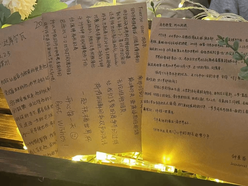 “我喜欢的球星是内马尔,他不仅长的帅,球技也十分了得,在西班牙国王杯决赛上使出过人动作彩虹过人,成功迷惑到对手,让队友得到球权,后面配合队友,赢得最后的胜利。卡塔尔世界杯小组赛第一轮,巴西对战塞尔维亚,双方的实力都差不多,我也不敢赌谁赢,不过我不在意结果,过程才是最重要,就让我们共同期待内马尔的精彩表演吧。”