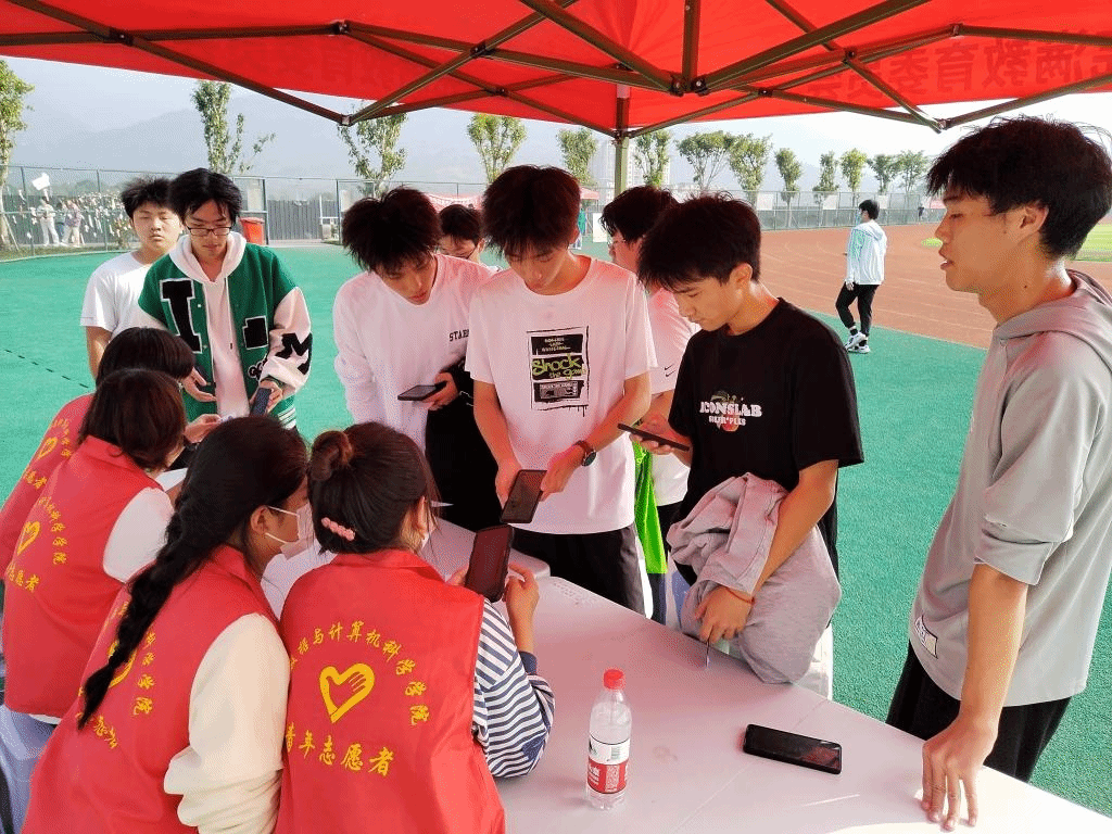 为减少在运动时出现不必要的损伤,促进血液循环,避免肌肉拉伤,确保参赛者的安全,在活动开始前先由志愿者引导同学们在操场进行热身运动后,再前往环跑出发点领取打卡纸并正式开启“环跑”。志愿旗帜迎风飘扬,带着同学们的低碳理念驰骋在校园里,传递的是一种志愿精神和风采。在活动中,参与活动的同学需要完成2公里的校园路程,并携带着卡纸,按照规定的路线前往瀛溪书院、横山书院和东溪食堂三个打卡点进行签到,并通过合照留念、自行摄影等方式打卡登记,再回到终点登记和扫码录入个人信息,完成“环跑”。