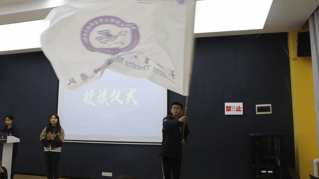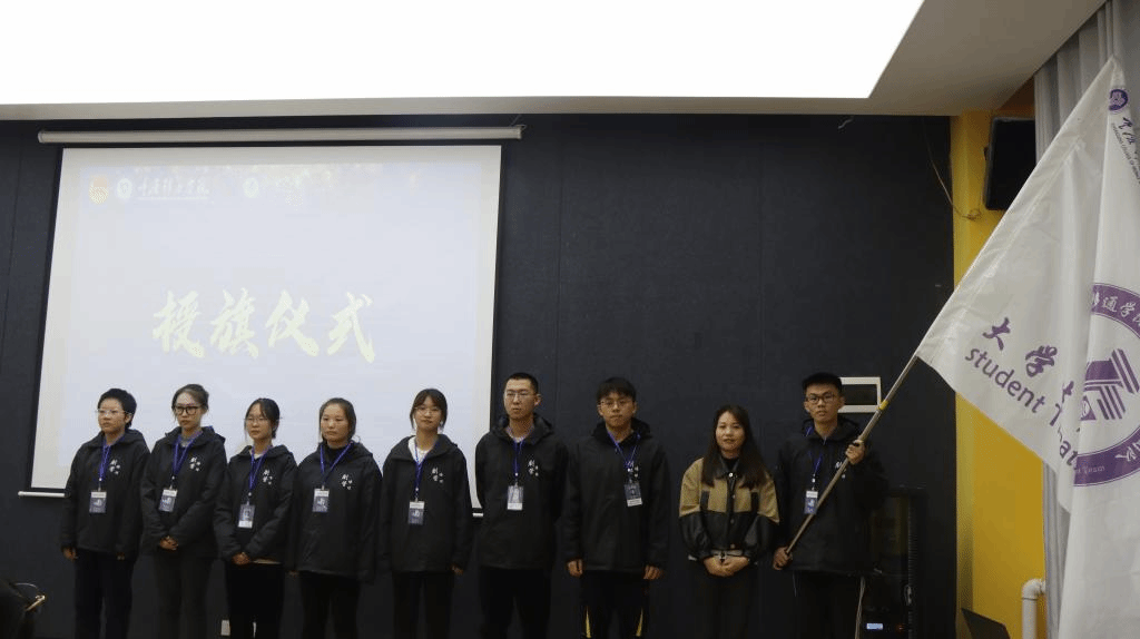 风好正是扬帆时,奋辑逐浪向未来。飘扬着的队旗渐渐呈上,由綦江校区学生科副科长陈永书老师将队旗授与团队干部艾晨曦,为成员代表佩戴工作证。接过队旗是一种信念的传递,更是一种责任的延续,这次授旗寓意着大学生剧场管理团队将以坚定信念认真完成工作。相信剧管能够在今后的日子之中发挥自己的闪光点,为剧场管理做出贡献,助力校园完满教育!