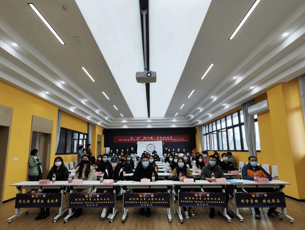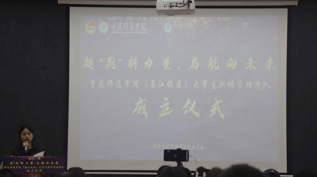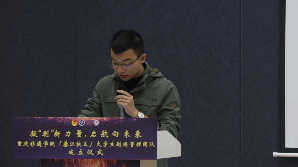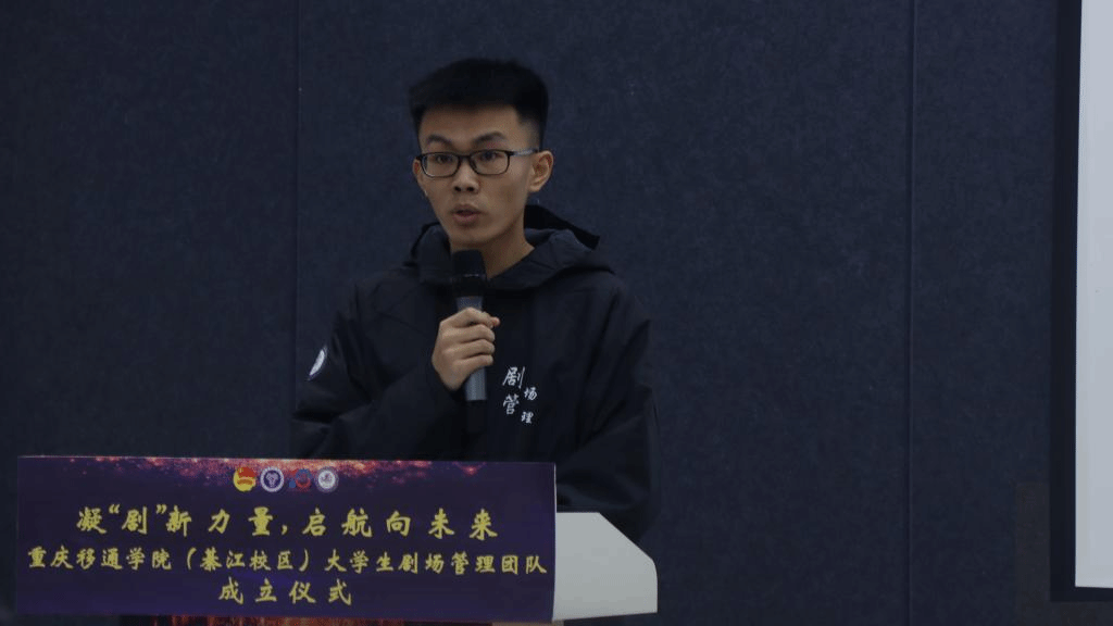 为提高綦江校区完满教育活动高质量呈现,提供专业化阵地管理,专业化阵地服务、专业化灯光音响技术支持,展现移通学子奕奕风采。于2022年11月25日中午12:30,在瀛溪书院回声报告厅举行:凝“剧”新力量,启航向未来——重庆移通学院(綦江校区)大学生剧场管理团队成立仪式。