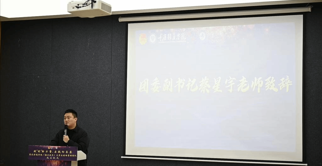 惟有深入了解,方能披荆斩棘。本次仪式的第一项,便是校团委彭江宇老师对綦江校区大学生剧场管理团队徽标和工作进行详细的解读。
