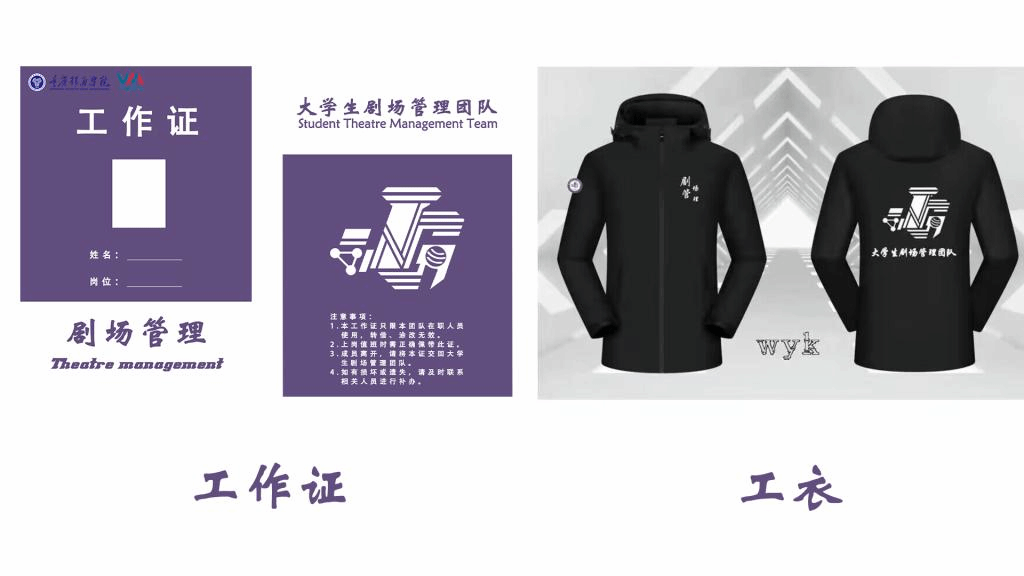 徽标的上线意味着剧场管理团队在綦江校区的诞生,在今后的活动中,它们能一直为完满教育活动保驾护航。团队还以徽标为主体,设计剧场管理的工作证、工衣,使团队更加系统、规范。