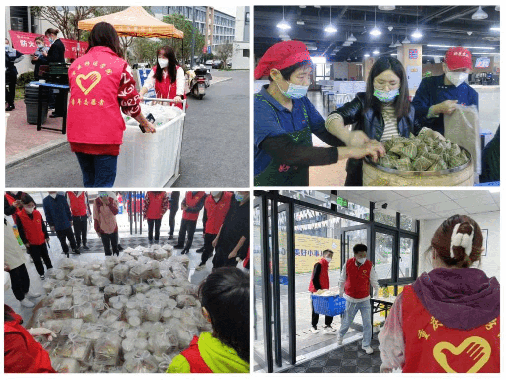 12日早上7点,当天色还朦胧未亮,学生们还在沉浸在梦乡时,通信与信息工程学院的志愿者老师们早已身着鲜红色志愿者马甲部署在食堂、綦河书院1号楼和3号楼,为学生们准备着当天的早餐。每栋书院入住的学生人数高达千人,要保证每一位学生都准时保质保量吃地到当天的早餐,需要分拣、装卸、配送等各个环节的每一位志愿者老师准确无误地完成交接。
