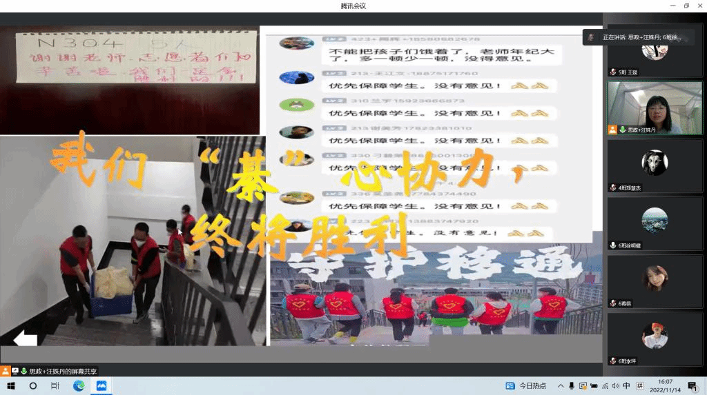 思政教学组全体专兼职教师本着“以学生为中心”的价值理念,及时关注学生诉求,回应学生问题,纷纷利用思政课堂优势对学生进行心理安抚和思想引导,积极与学生展开对话,缓解学生心理压力。