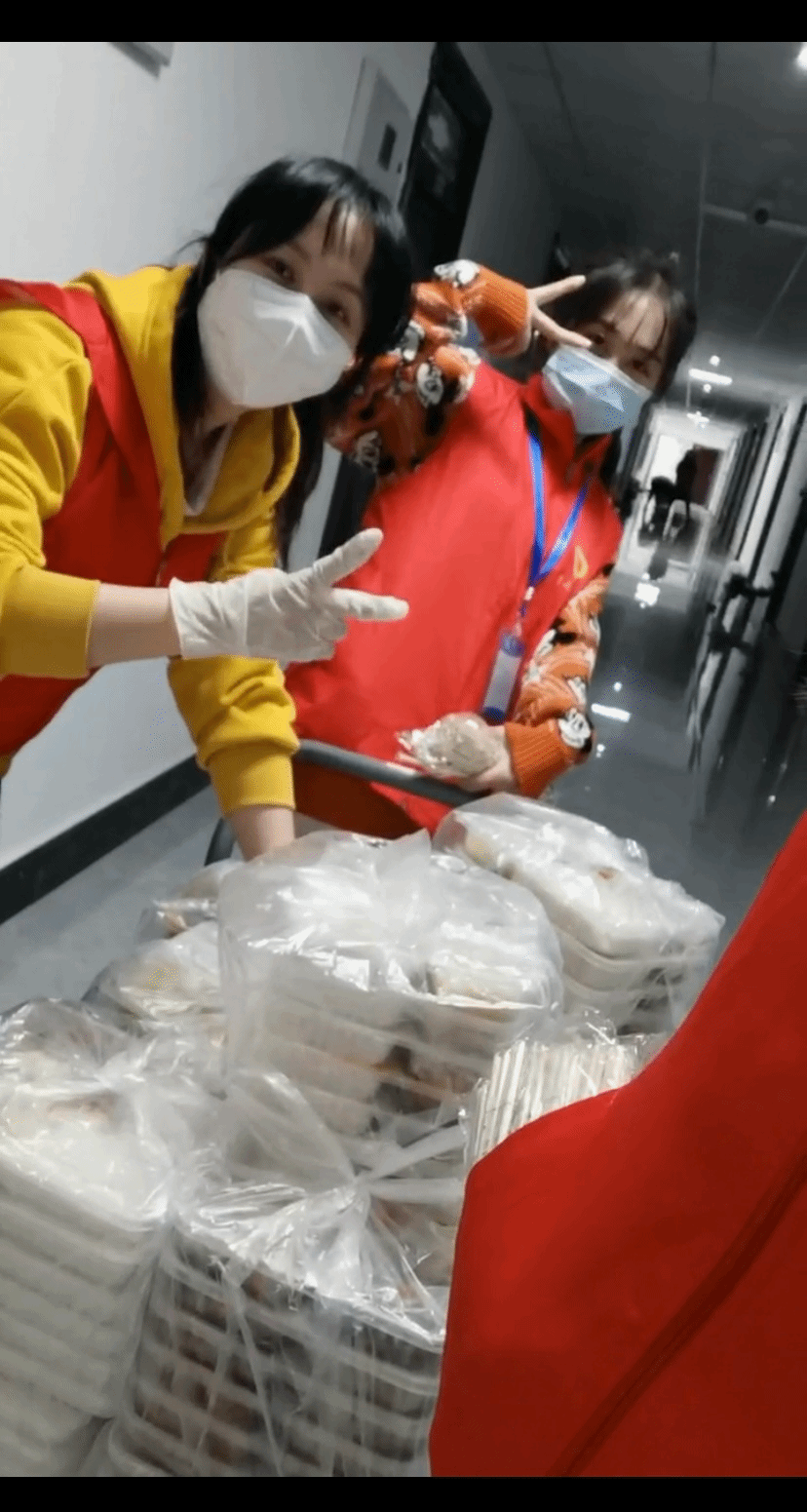 高齐和郝月霜老师在接到第一天紧急招募志愿者的消息,立马报名参与到志愿者的工作中。首先,两位老师到各个学生宿舍挨个去敲门,让寝室长加群以方便后续沟通。随后,引导学生分批次下楼做核酸,由于天气渐凉,两位老师也招呼学生让他们注意保暖,增添衣物,并维持核酸队伍保持距离。到了中午饭点,则是将饭发放到每个宿舍门口,确保学生的基本生活保障。由于学生楼栋较多,志愿者较少,发放完午餐,已经下午2点多了,此时的高老师与郝老师才吃上午饭,吃完午饭休息了一会儿,又开始准备发放晚餐的工作。当然,有了中午的经验,晚餐送达的时间也有了提高。除此之外,他们在志愿活动中,积极配合医护人员,上门协助做好温度计、酒精的发放等相关志愿服务工作。忙碌的志愿工作让两位新老师的生活充实而又有成就感,使他们对教师生涯有了更生动的诠释,也坚定了这一职业的选择。