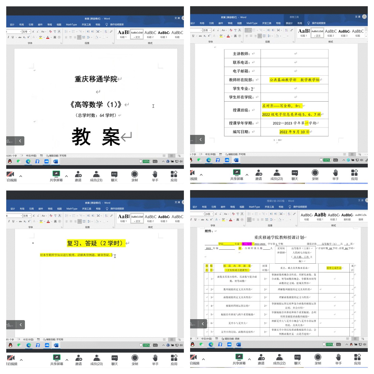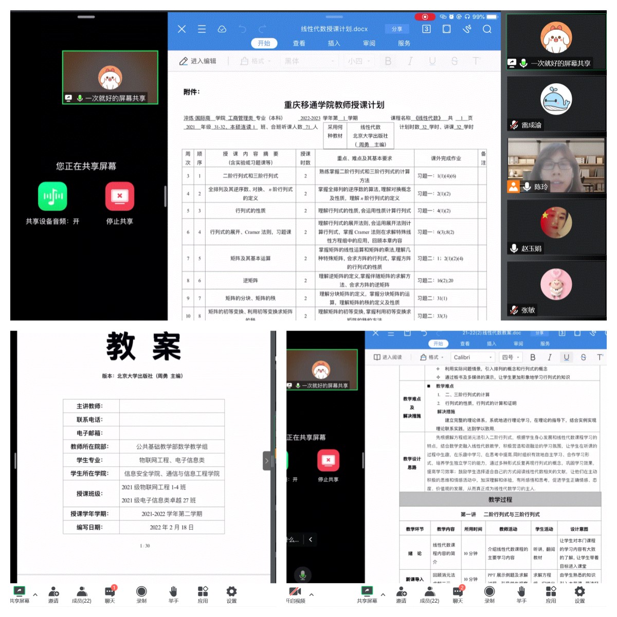 “麦克风无异常”、“摄像头已开启”、“听得到声音的同学请扣1”……防疫不放松,停课不停学。许多教师因有教学任务而无法投身到志愿者行列中去,从而更好地为师生服务。但大家都深知,此时,帮不上忙但不添乱才是最重要的,我们可以尽己所能努力让同学们安心的上课,保证线上课程学习质量不缩水,这也同样尽到了自己的一份责任。为此数学教学组教师们在此次会议中集思广益,寻找总结一个又一个更优的方法。如何确保在课程中需做核酸学生不因此而耽误学习,如何尽最大努力确保学生们能将精力投入到课堂中来,甚至两位同宿舍的教师同一个时间段上课时,为不影响教学质量,将教学工具搬到了阳台上……师生们积极配合学校的工作,同心抗疫,共克时艰。
