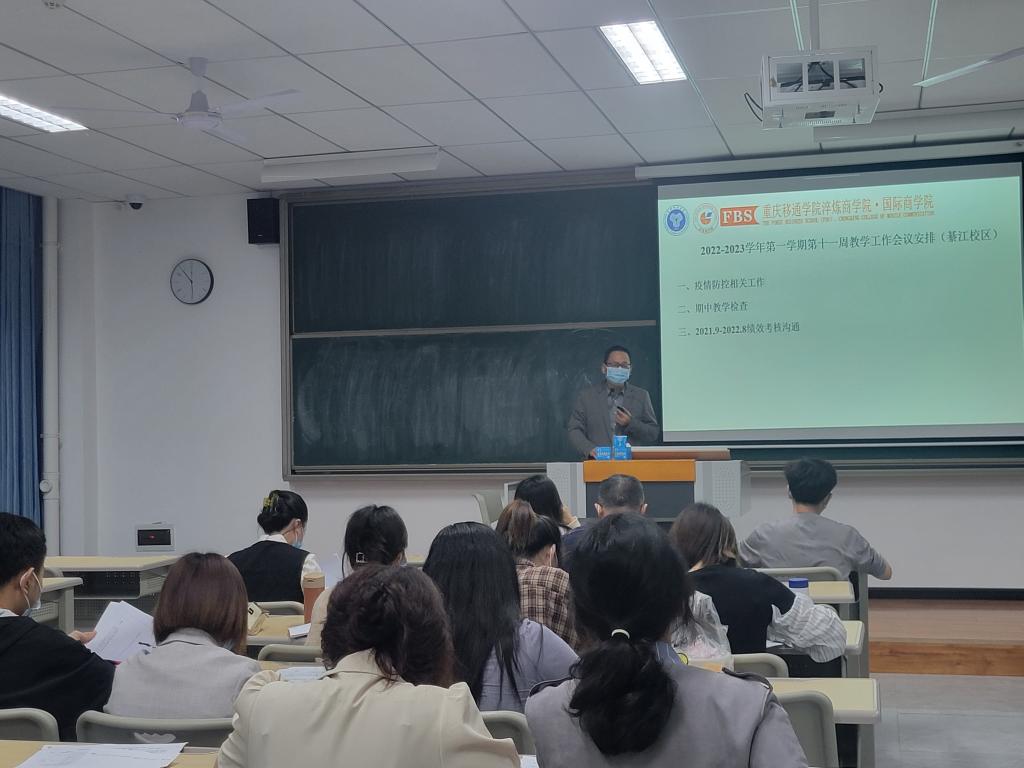 为了总结本学期前半期的教学工作进度,以及为了让后半期教学工作更加有序开展,11月11日19:00,綦江校区淬炼·国际商学院在智者楼202教室开展了期中教学情况检查以及总结会议。本次会议由副院长范保珠主持,全体教师参加了会议。