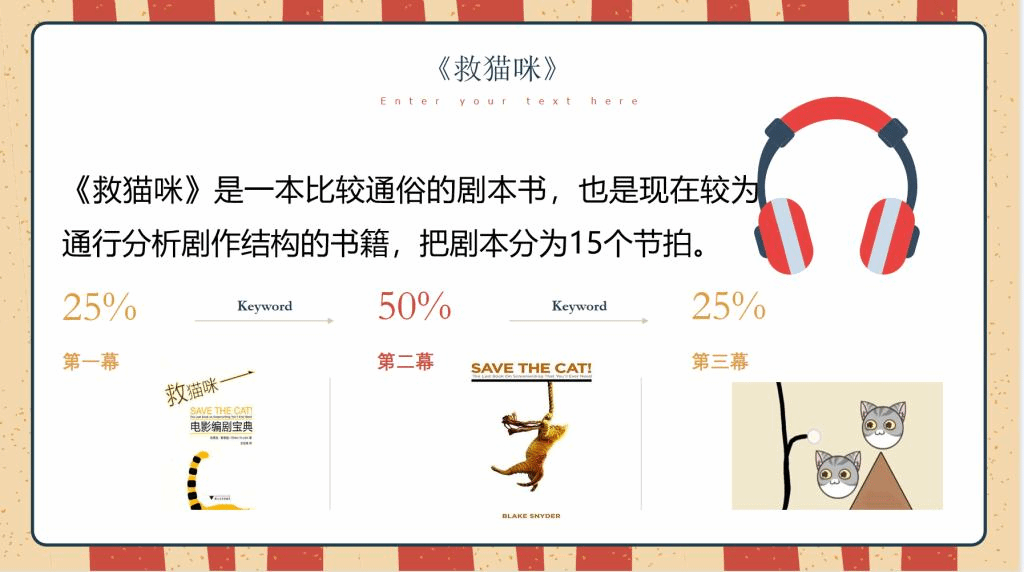 接着段老师罗列出三本阐述剧作方法的书籍——《救猫咪》《作家之旅》《故事策略》,并将每本书中节拍点的具体安排情况做了对比分析。随后,段老师结合电影剧本《放牛班的春天》着重讲解了剧本与《救猫咪》中相同与缺失的节拍点。