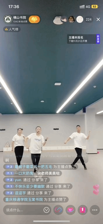 同时为了满足广大师生的运动需要,竞技体育中心在困境中寻求突破,采用抖音直播的方式,进行大众健身操的线上直播,旨在调整师生的生活方式以及心理状态,让每一位热爱运动的在校师生重新焕发活力。曹杰老师,李蒙蒙老师,余凤琴老师在展示优美动作的同时,也不忘提醒观看直播的师生怎样避免容易做错的动作,如何才能跟上节拍。真正做到了疫情防控不枯燥,健身娱乐全来到。