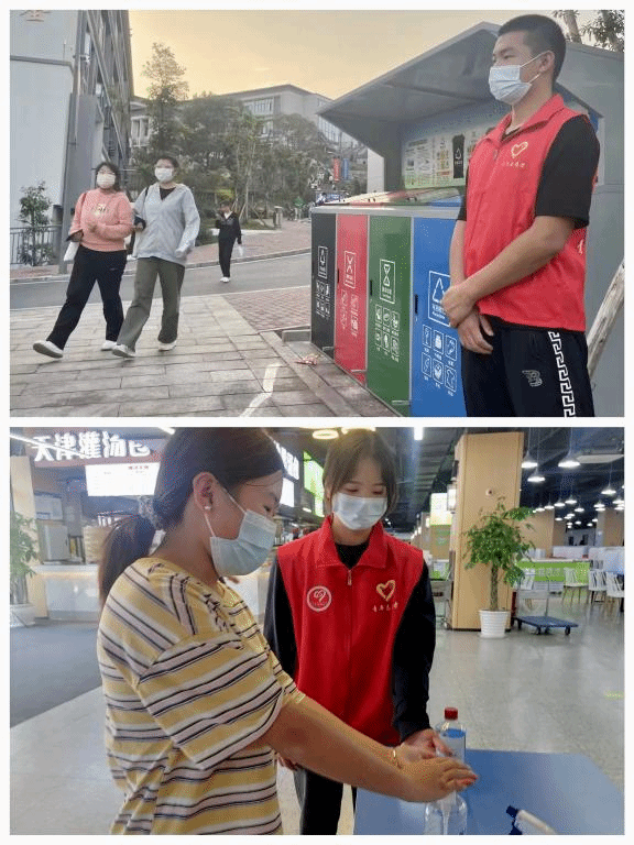 11月9日,学院青年志愿者协会组织志愿者派出志愿服务监督小组,分别在食堂、宿舍、操场等人流密集地提醒过往同学“戴口罩、勤洗手、一米距”,保持良好个人卫生习惯,做好个人防护。同时以学习部牵头,统一学习委员进行课堂戴口罩强调,不断强化学生重视戴口罩的意识,极大降低疫情风险。