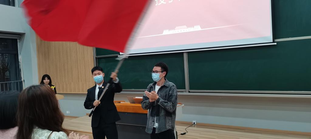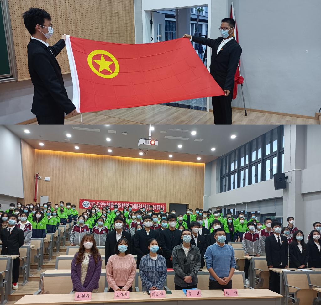 随后,全体干部干事右手过肩,在宣誓代表的带领下,将心中的铿锵誓言道出来,希望全体成员在完满的浸润下,实现个人更好地成长,突破个人更好地成绩,在团队中找到价值,在实践中体现价值。当指导老师将团旗授予青年志愿者协会部长贾轩同学的那一刻,正式代表着学院第三届第四任学生组织已经做好准备,信心满满勇毅向前,团队的成长会在他们的手中得到焕新提质的变化,完满的未来也将在他们的工作中绽放更绚丽的烟火。