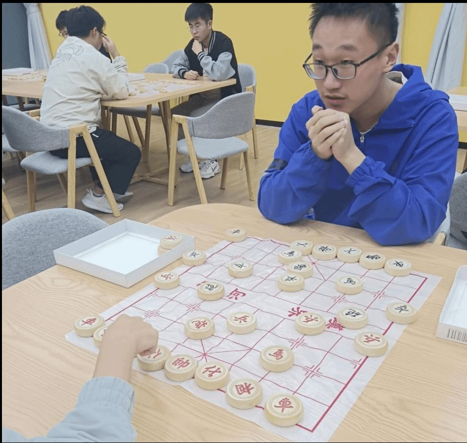 在周赛过程中,各位参赛选手热情高涨,斗志昂扬。在工作人员确定对手和轮次后,选手们便在河界双边展开厮杀。现场绵绵不绝的响起棋子与桌面碰撞的声音。棋到中盘,节奏便慢了下来,选手举棋不定,甚是谨慎,有时思量许久才落子,比起序盘,中盘的对局更像是暴风雨来临前的宁静。果不其然,在第一声吃子声响起,便打开了终盘的序幕,一个接一个的棋子被提起,瞬间满满的棋盘变得空旷起来,两边或是只剩寥寥无几的车、马、炮;或是无奈的进兵飞象,最终也只能被绝杀认负。如此场景正应了那句:做事就像下象棋,必须得走一步看两步想三步,未雨绸缪,运筹帷幄,成竹在胸,才能有将死对方的把握。