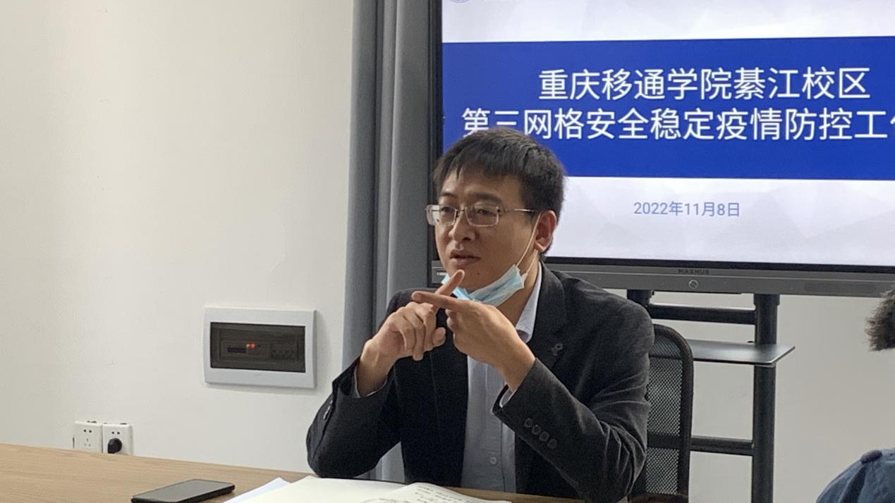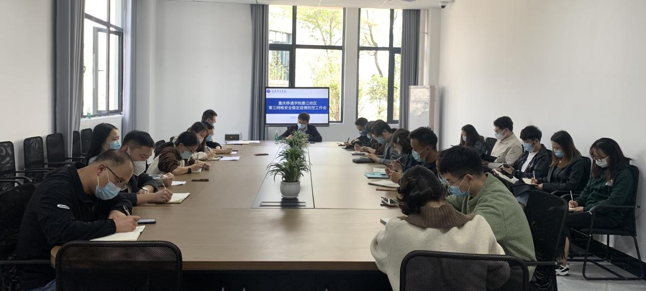 11月8日下午,綦江校区第三网格在勇者楼101会议室召开安全稳定疫情防控工作(扩大)会议,分析当前疫情防控形势,传达学习各级疫情防控指导文件精神,研究部署近期疫情防控及安全稳定工作。副校长李文豹出席会议并讲话,第三网格各单位负责人、联络员以及各学院学工办主任参会,会议由网格牵头单位学生处副处长梁少锋主持。