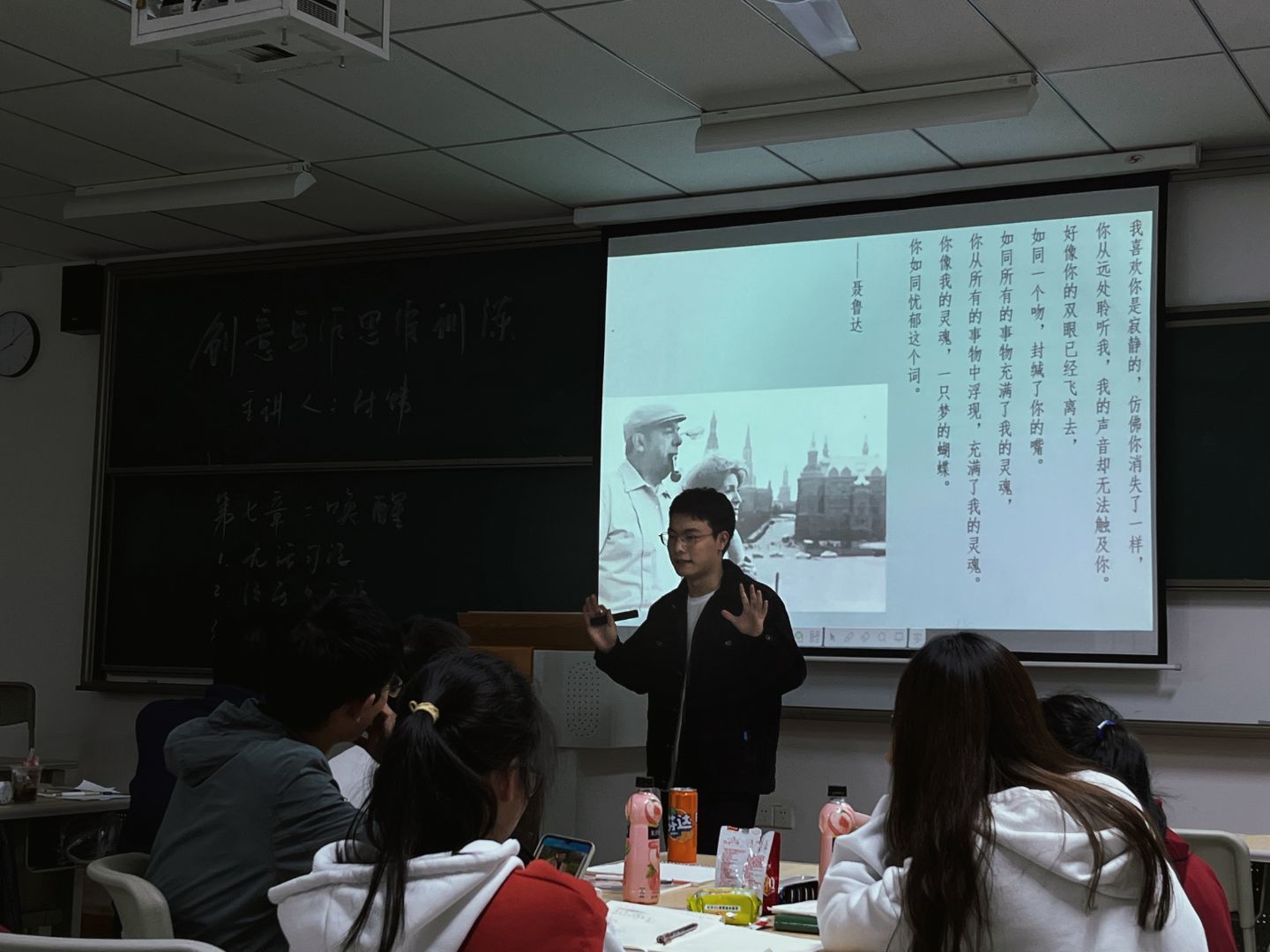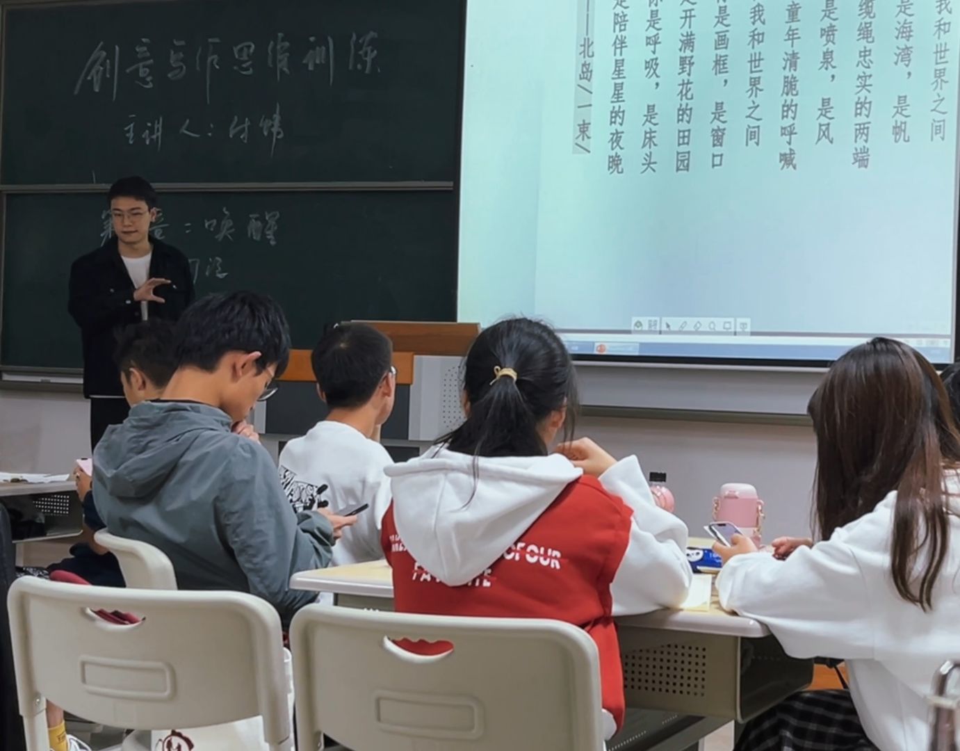 11月6日,作家班诗歌工坊的《创意写作思维训练》课,又准时在仁者楼309开讲了。本次课堂,讲的是“唤醒”。付炜老师借助这两个“直击灵魂”的问题,带领全体诗歌工坊学生进入诗歌的世界。