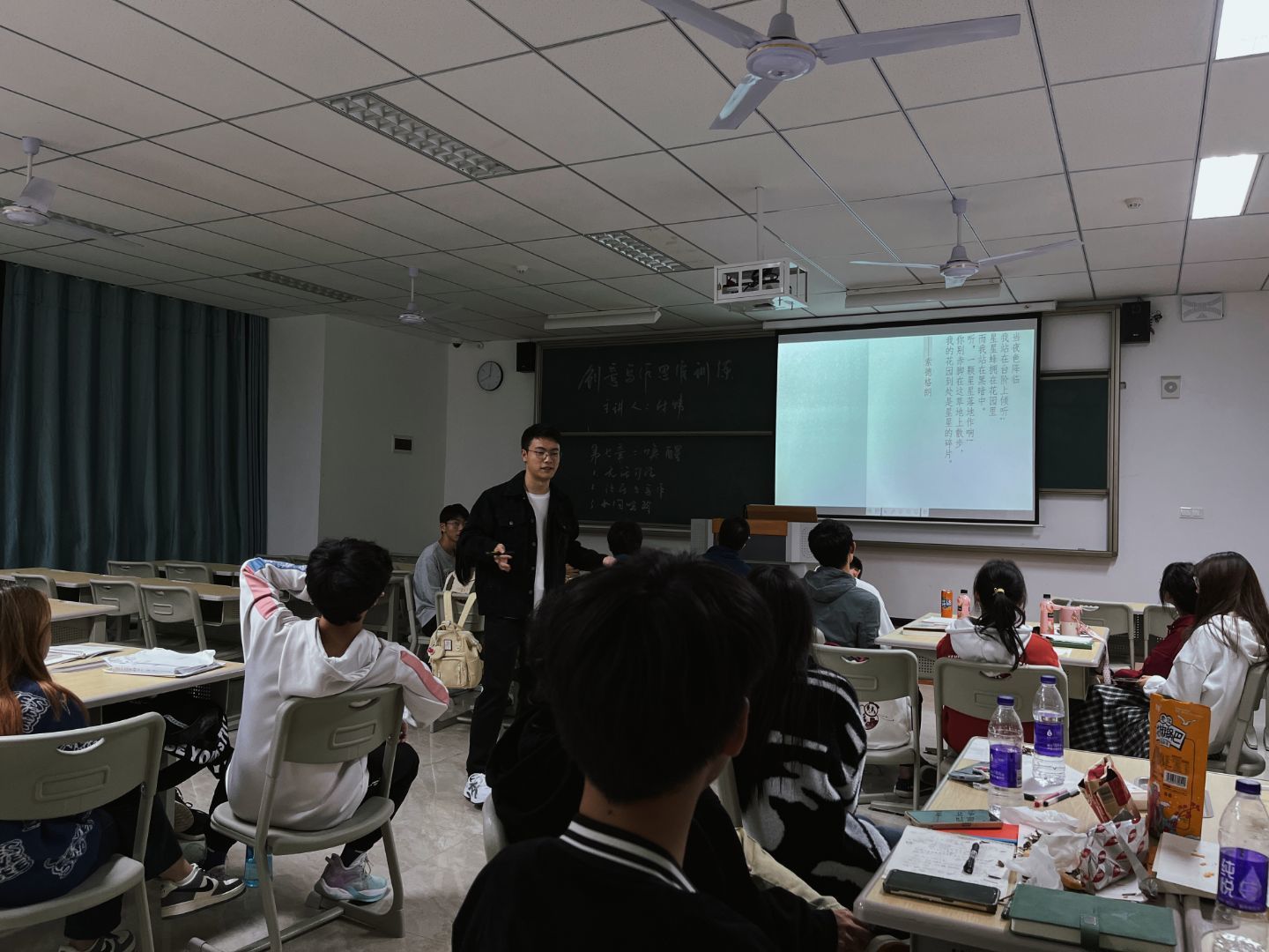 陈冠宇同学第一个分享:“此去必经年,仓促的一面,竟然是最后的一面,不知道你变了多少,就像不知道花开了多少。”此言一出,教室片刻沉寂。“写作就是一个疗愈自己的过程,很多心事只要写在纸上就能够平息下来,让自己得到宽慰。”付老师建议陈冠宇同学可以更深地走进自己内心,再补充一些细节,让自己的情感获得升华。我们写作时都会经历无话可说,那是因为我们不懂利用自己的经验,那些欢喜、悸动,甚至是焦虑、痛苦,其实都是作为写作者的宝贵财富。