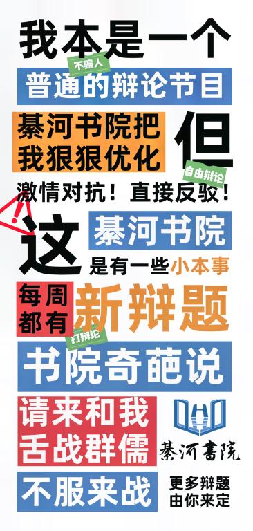 綦河书院奇葩说栏目形式有趣,辩题更是涵盖社会问题、脑洞问题、三观问题,有普世意义,有讨论价值,有人性,也有社会洞察。书院奇葩说,我们下期见。