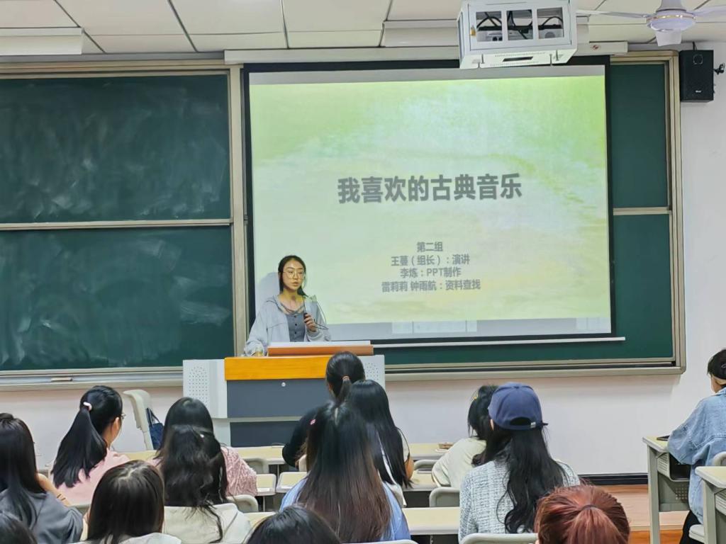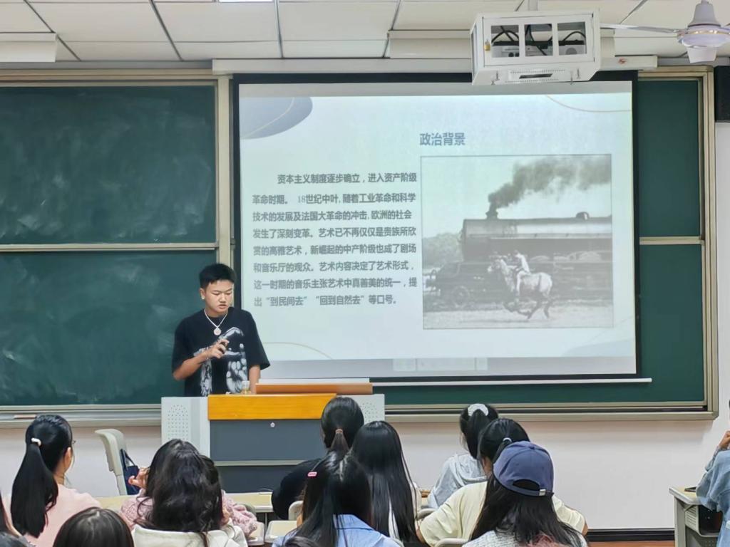 《古典音乐入门》课程以培养学生艺术审美情操与艺术创作能力为教学目标,通过对学生音乐的审美感受和美学素质的培养,在学生修身养性方面起到促进作用。本学期经过了五周的学习,同学们已经对音乐剧的流派、风格、发展历程、代表作品等有了一定的了解。为进一步检验教学成果,谭松林老师安排同学们进行《古典音乐入门》课程课堂陈述,探寻古典音乐之魅力,让同学们学有所得,学有所获,学有所长。
