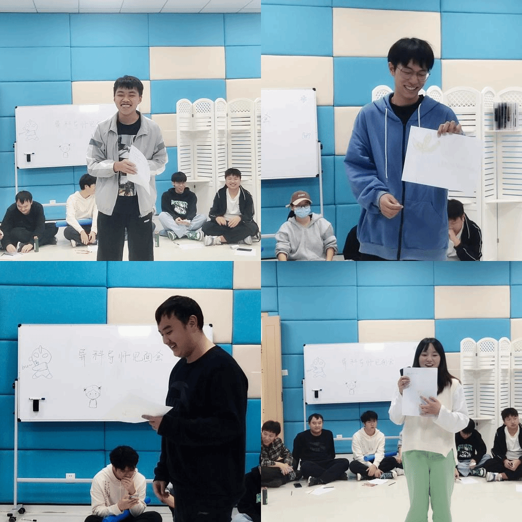 范彬:少年气息大概如此,我们欢聚一堂,携手并肩闯难关。本次见面会中,我们的辅导员蔡老师也一起参与其中。张老师让我们彼此在游戏中熟悉了起来。并且询问我们希望在异科活动中得到什么,我写的是"成长与有趣"。我希望在与老师相处中能够得到成长,与大家有趣的相处。而这一次见面会中,我都感受到了,我很喜欢。平常上完课后,同学们在课后聚齐玩耍的机会少之又少,借此次的机会,在欢快的游戏中我们彼此的关系又进了一步。