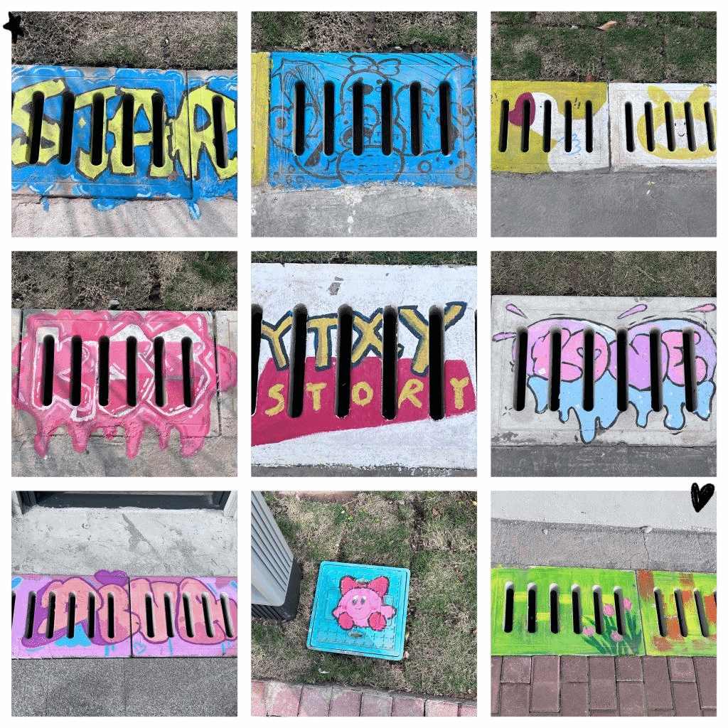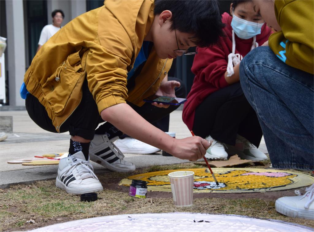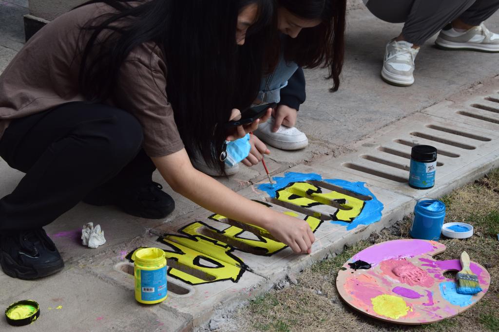 社区服务部是社区家文化的主要建设力量。本次团建任务通过组织各部门同学协力完成书院井盖、石柱的涂鸦,装点了社区家园氛围。“墨笔丹青如行云流水,奇思妙想任思绪遨游”,每一位参与活动的同学都带着认真的神情,在一笔一画中映射出靓丽的内心世界。粉笔构图、笔触的力量美感和层次美感、冷暖色调的运用、高光的点缀,让书院家文化气息愈加浓厚。俏皮的汤姆和杰瑞、生动的绿叶点缀红花、可爱的海绵宝宝携手派大星,统统书写出了青年们的蓬勃朝气与源源不断的创造力。同学们不仅在绘画中收获难得友情,同时鲜活多彩的各色形象也为空旷的书院空间注入了无限活力与生机。