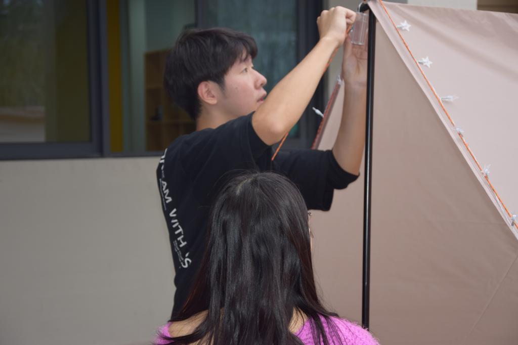综合办公室充当着书院的大管家、分析师、督导师等多元角色,是书院工作重要的枢纽部门。综合办公室的团建任务包括搭建户外天幕,打造瀛溪独特风景打卡点,梳理第一次全体干事见面会流程及物资准备。搭建天幕考验的是团队的凝聚力、统筹意识,通过动手实践、协作分工达到互动交流的目的。会议流程梳理过程中,成员们纷纷提出自己的想法,相互借鉴,进行细节矫正,最终形成了规范的会议流程文件。