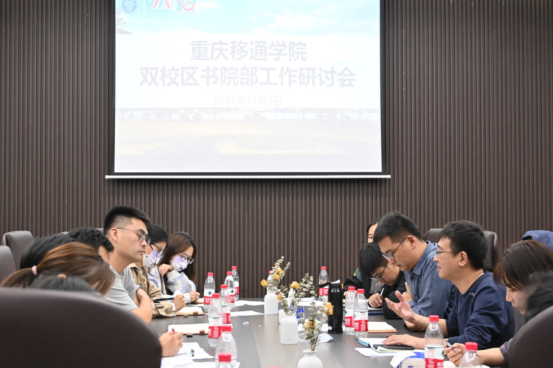 为加强双校区间融合交流,更好地搭建资源共享互助平台,促进书院建设协同一体化发展,持续推动书院内涵建设提质增效,11月1日,由书院部穆春江部长,带队合川南湖书院、天空书院教师代表前往綦江校区开展了双校交流研讨会,移通学院李文豹副校长、穆春江部长、曹玉姣副部长及双校区各书院教师代表参加了此次交流活动。
