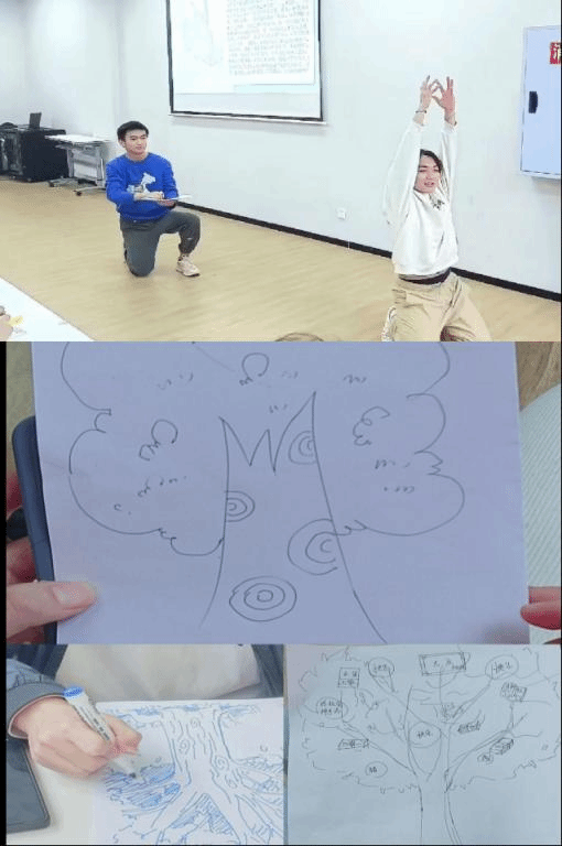 在整个鉴赏过程中,艺绘社成员通过情景剧表演形式,生动形象的演绎出《祈祷的手》这副名画背后的故事。各位社员对此也感到深深的触动。在随后开展的绘画心理学中画树的小游戏里,同学们用画笔描绘出风格不一、颜色明亮的树木,它们可以是风姿绰约,可以是高大强壮。简单的笔画折射出大家的内心世界,也让我们学会如何运用色彩和线条来表达内心世界、表达自己的情绪。